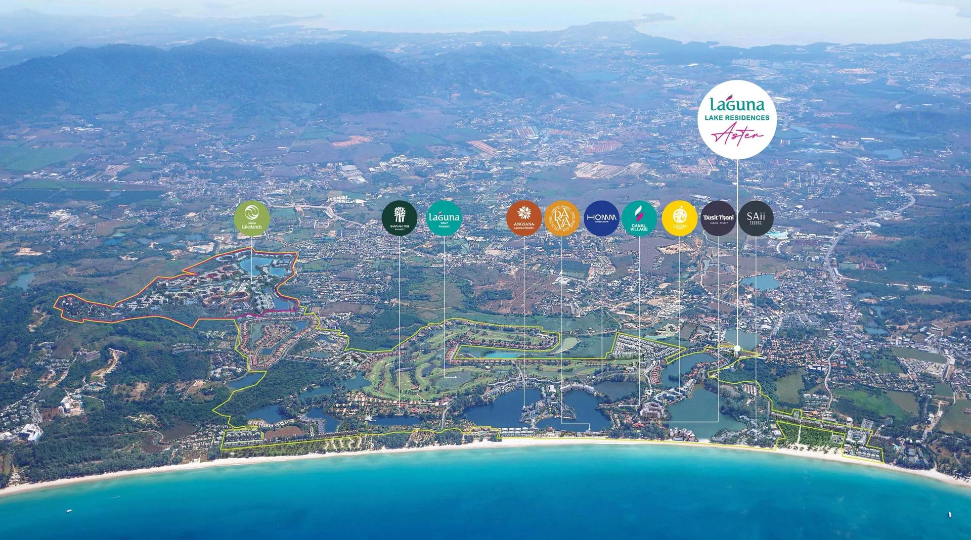 Laguna Aster is set near the entrance to Laguna Phuket in the Thalang district of the island. The surrounding area features a diverse mix of resort amenities, shopping and dining venues, wellness clinics, and educational institutions.