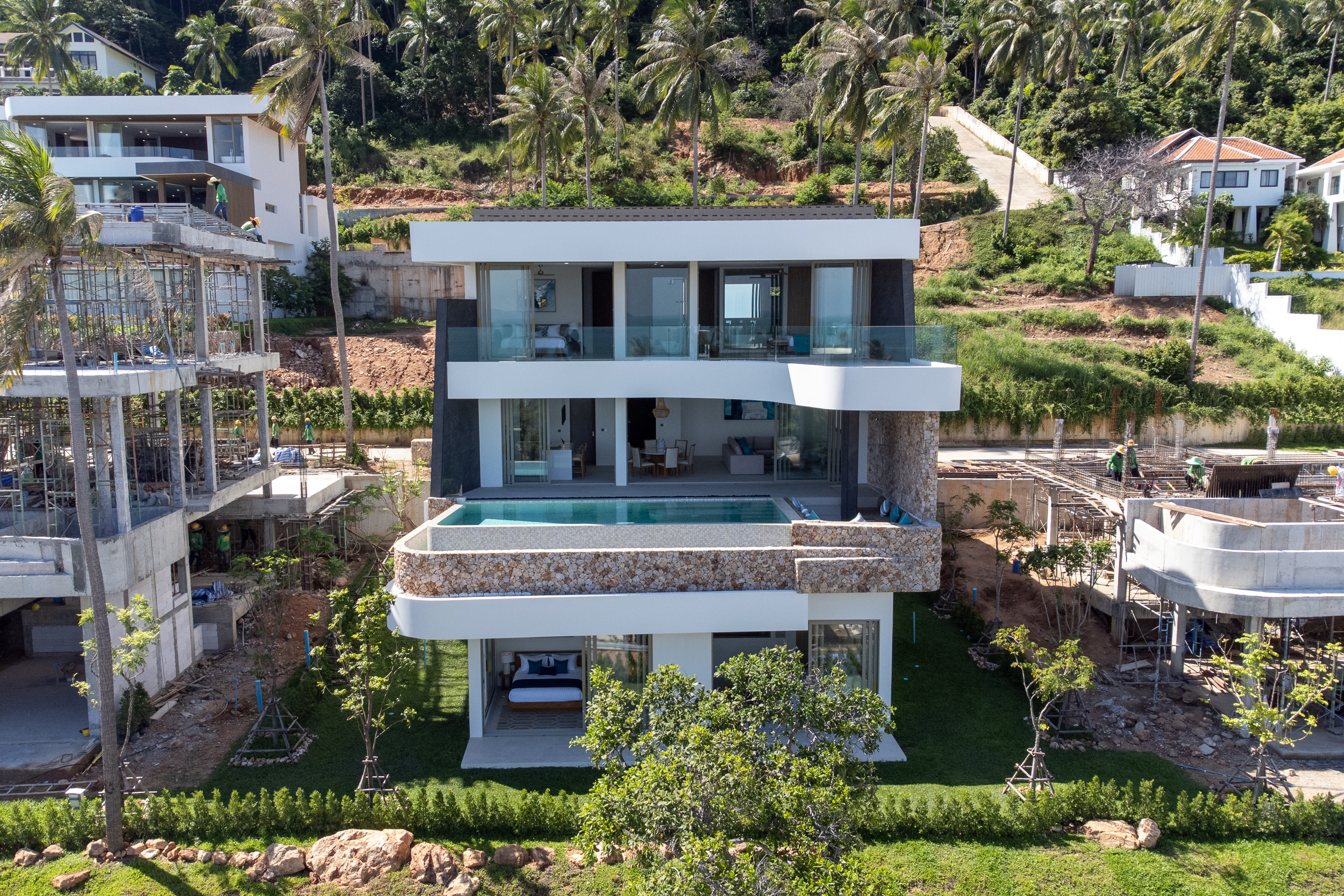The project is led by a German developer with a background in ultra-luxury residential projects in Spain and brings refined European standards to the island. This level of execution is reflected in every detail, from premium material selection to thorough planning and overall quality of the infrastructure, including a dedicated electricity stabilizer, which remains uncommon among residential developments on Koh Samui.