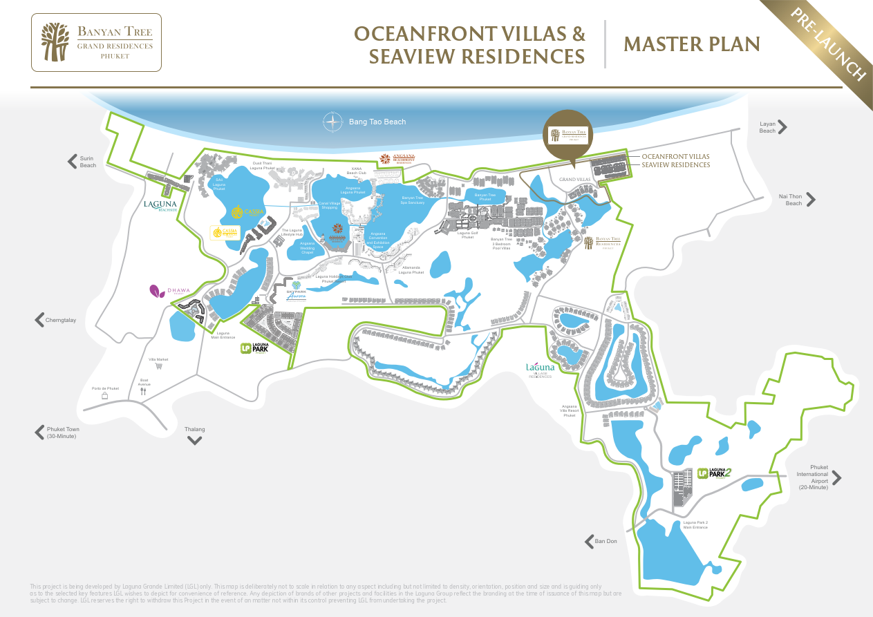 Большинство проектов в Таиланде находятся в зоне комплексного курорта Laguna Phuket группы Banyan Tree и занимают свыше 1000 акров тропической парковой территории в центре пляжа Бангтао. Laguna Phuket включает в себя несколько отелей и жилых объектов, рестораны, спа-салоны, поле для гольфа Laguna, торговые галереи и другие объекты, находящиеся на общей территории, обслуживаемой по гостиничным стандартам. Это одна из самых популярных локаций на Пхукете.
