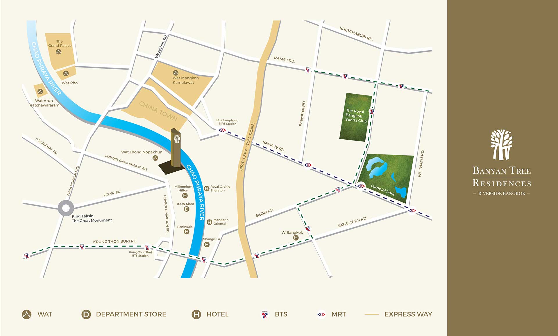 Самый значимый из них — ICONSIAM — многофункциональный комплекс с одним из крупнейших торговых центров Азии. Его открытие в ноябре 2018 года дало мощный толчок развитию прилегающих территорий. Banyan Tree Riverside находится всего в 600 метрах от ICONSIAM.