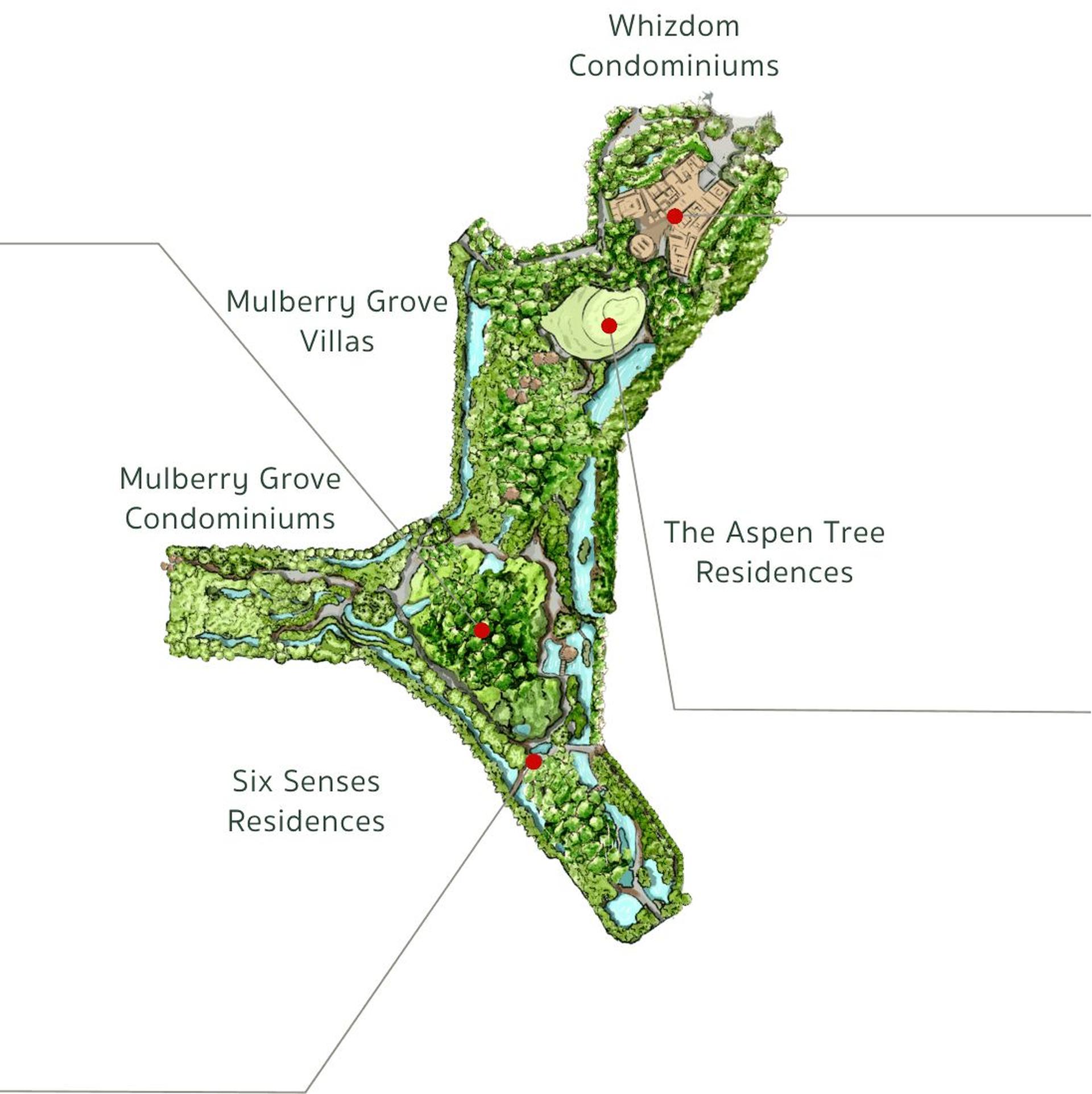 4. Six Senses luxury villas — Southeast Asia's first resort-style luxury residences managed by the international hotel brand. Each villa features a private garden with a pool, and residents get access to signature Six Senses spa treatments, personal concierge service, and exclusive brand events.