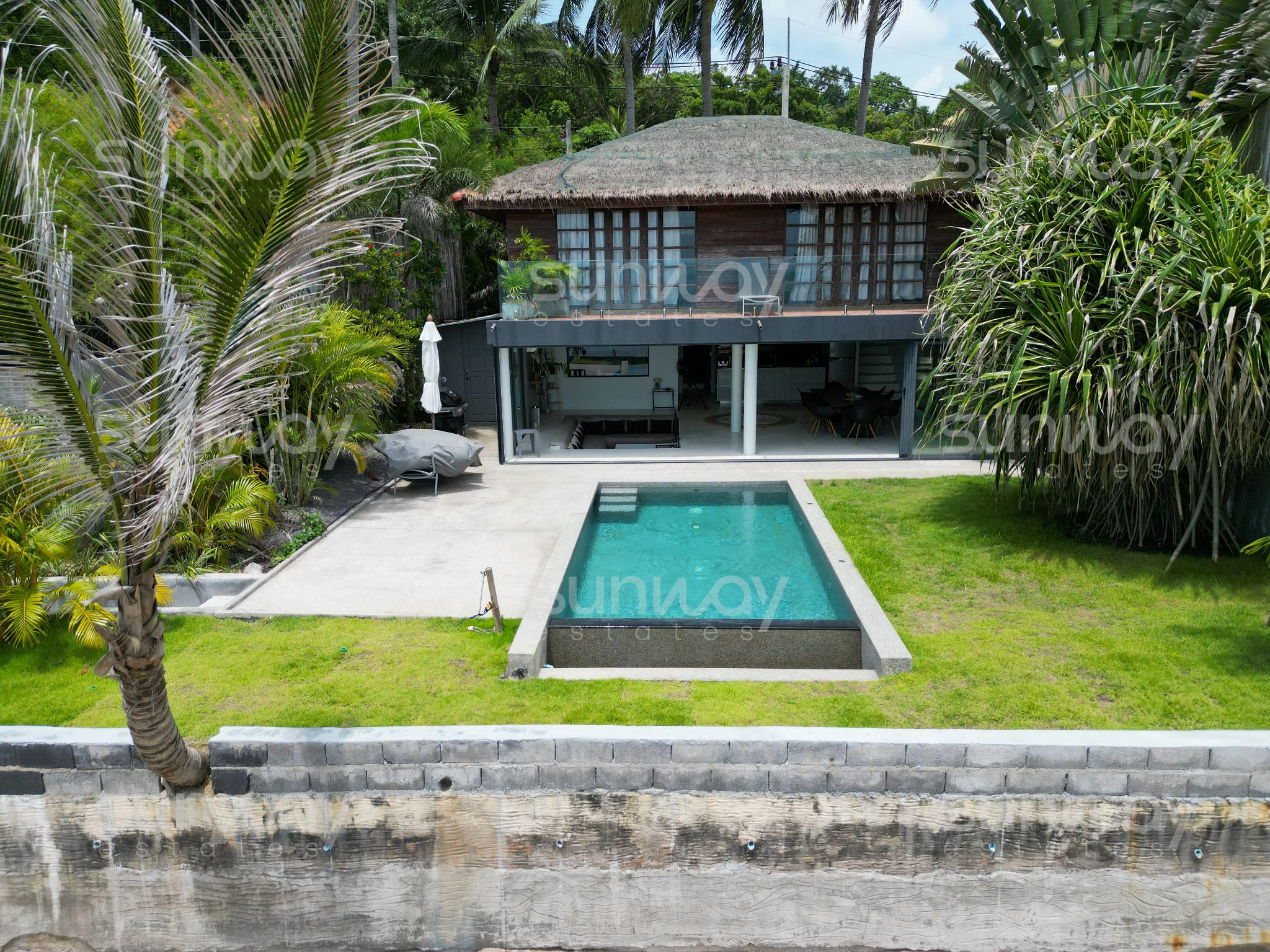 Blending timeless design with modern tropical comfort, the villa opens with an inviting open-plan kitchen, dining, and sunken living room that leads seamlessly onto the beachfront terrace and private pool. With 15 meters of direct beachfront, this property is one of only a few homes offering both privacy and convenience in such a prime location. Its freehold status, generous land size, and zero communal fees further enhance its long-term appeal—whether as a personal retreat or income-generating rental.