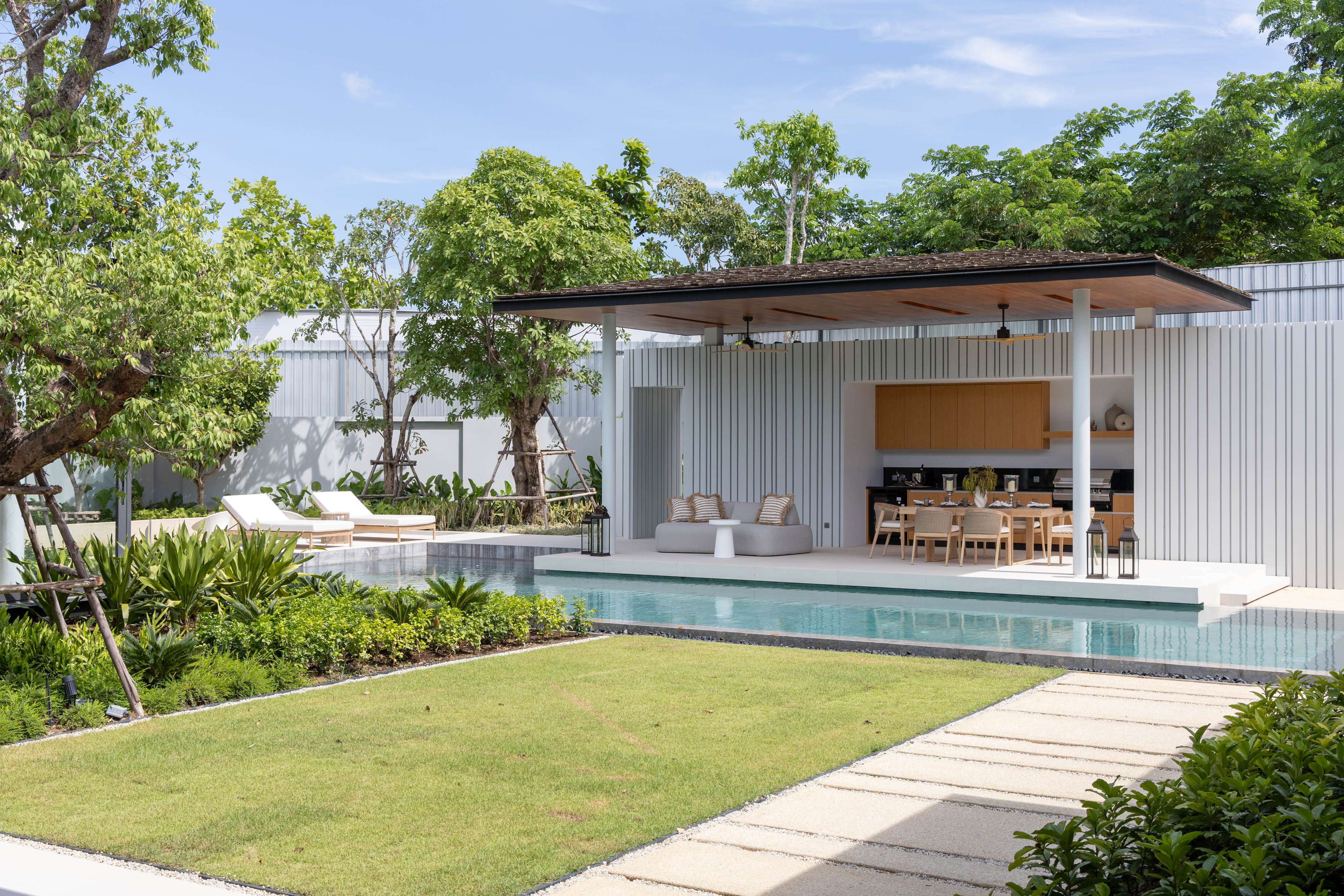 With this new development Botanica - one of Phuket’s top developer of luxury villas - is taking their award-winning Modern Luxury design villas to the new hotspot of northern Phuket - Pru Jampa. This quiet, green district, thanks to it’s scenic nature and proximity to the amenities of nearby Bangtao area, in the last couple years had experienced a boom of new high-end developments. These include also several showings by Botanica itself, including Botanica Pru Jampa and Botanica Four Seasons, however Green Boulevard raises the bar to a more grand level.