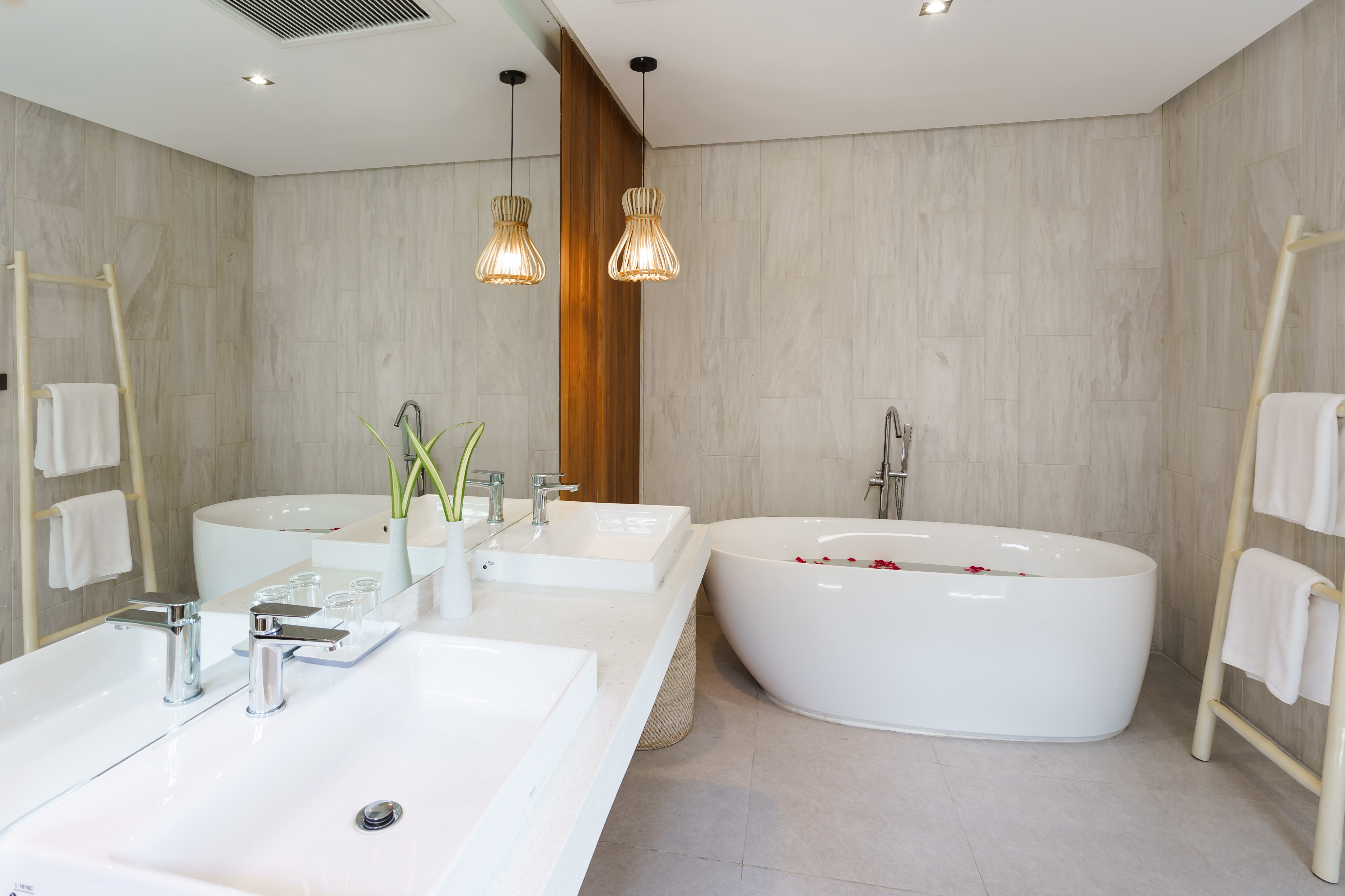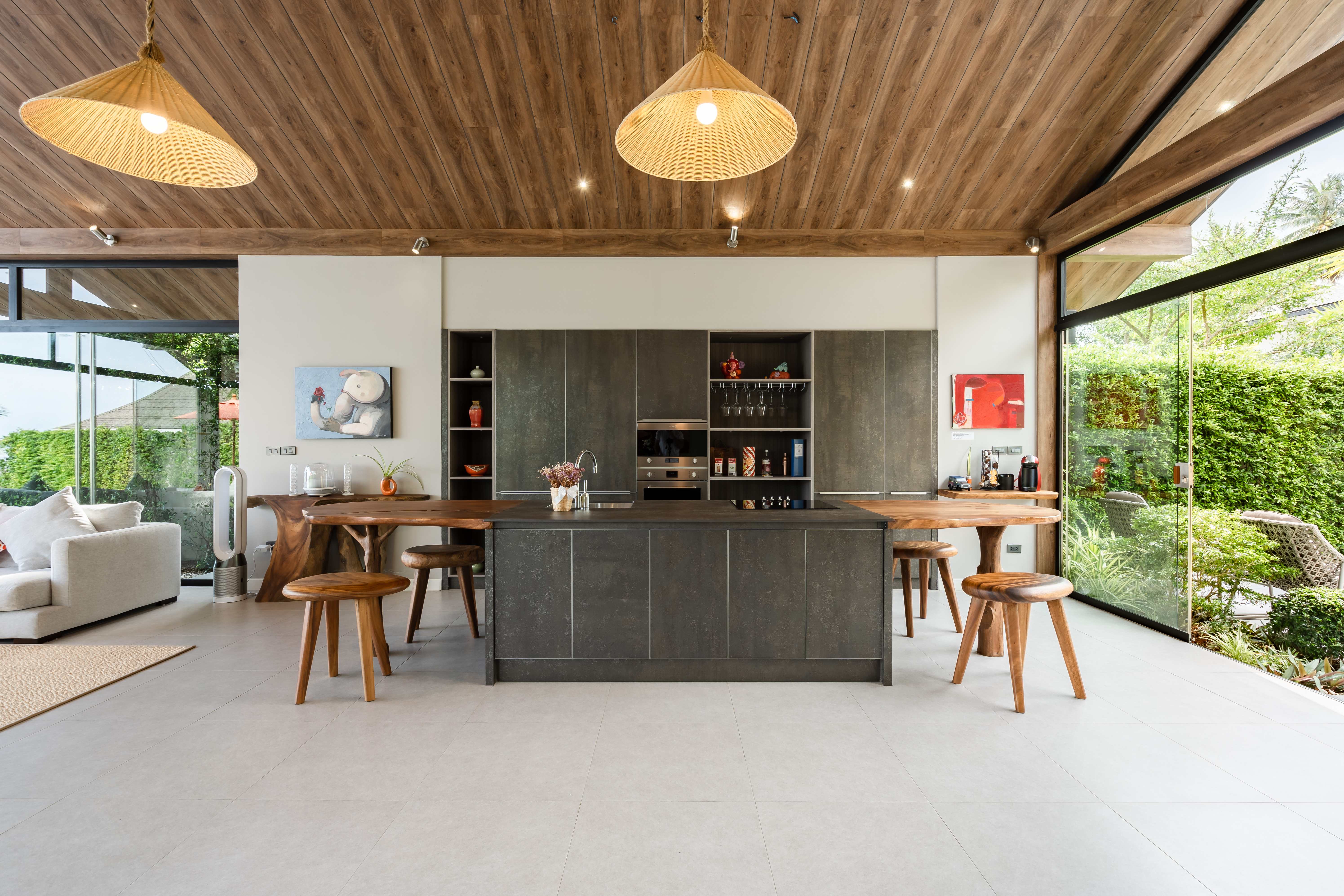 These beachfront villas are located in the south of the island – Baan Talay Beach (between Laemset and Bang Kao Beach), this location is easily accessible as the convenient location close to Hua Thanon. The pair of villas are located side by side and are both for sale. The villas are completed to the highest standards, they show off imported Turkish travertine, stone, Indian Slate and European engineered timber throughout.