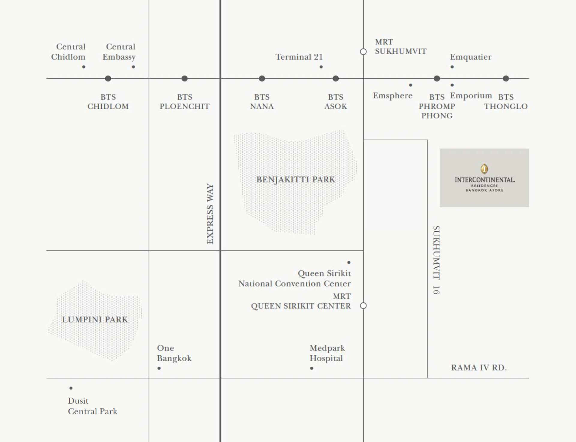 InterContinental Residences Bangkok Asoke is located on soi Sukhumvit 16, less than 400 m from Asoke intersection and BTS Asok.