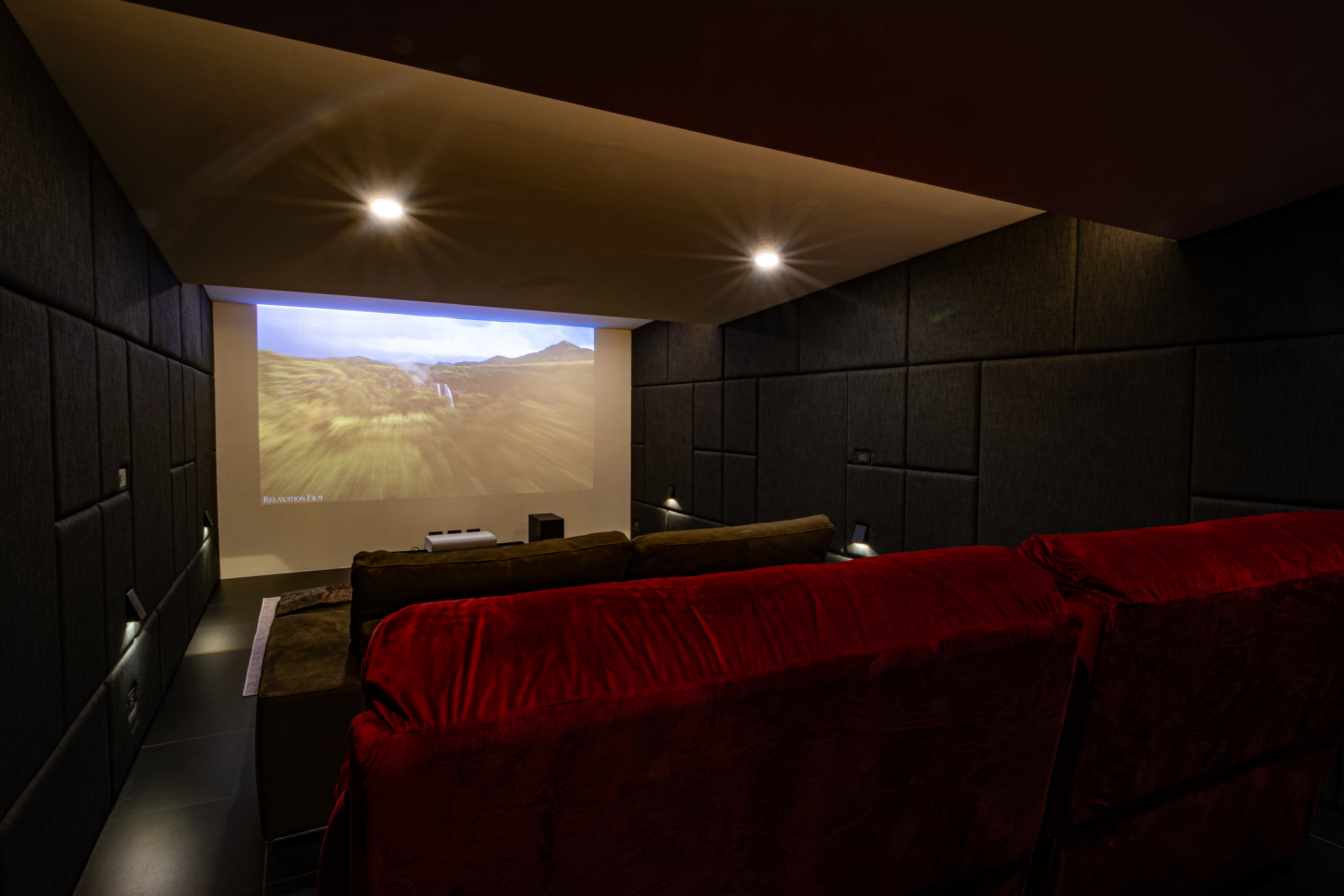 The lower level offers three ensuite guest bedrooms, a private cinema room, popcorn pantry, and additional staff accommodation. The basement level houses two enclosed garages for long-term vehicle storage.