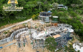 Experience the unparalleled charm of Kunkhao Tara Villa, an extraordinary under construction villa project that seamlessly integrates architectural finesse with the surrounding nature, incorporating natural raw materials and ecological aesthetics. The villa's design showcases a wide seaview frontage and artistic elements, characterized by numerous ovals and rounded edges, crafting an organic and distinctive structure.
