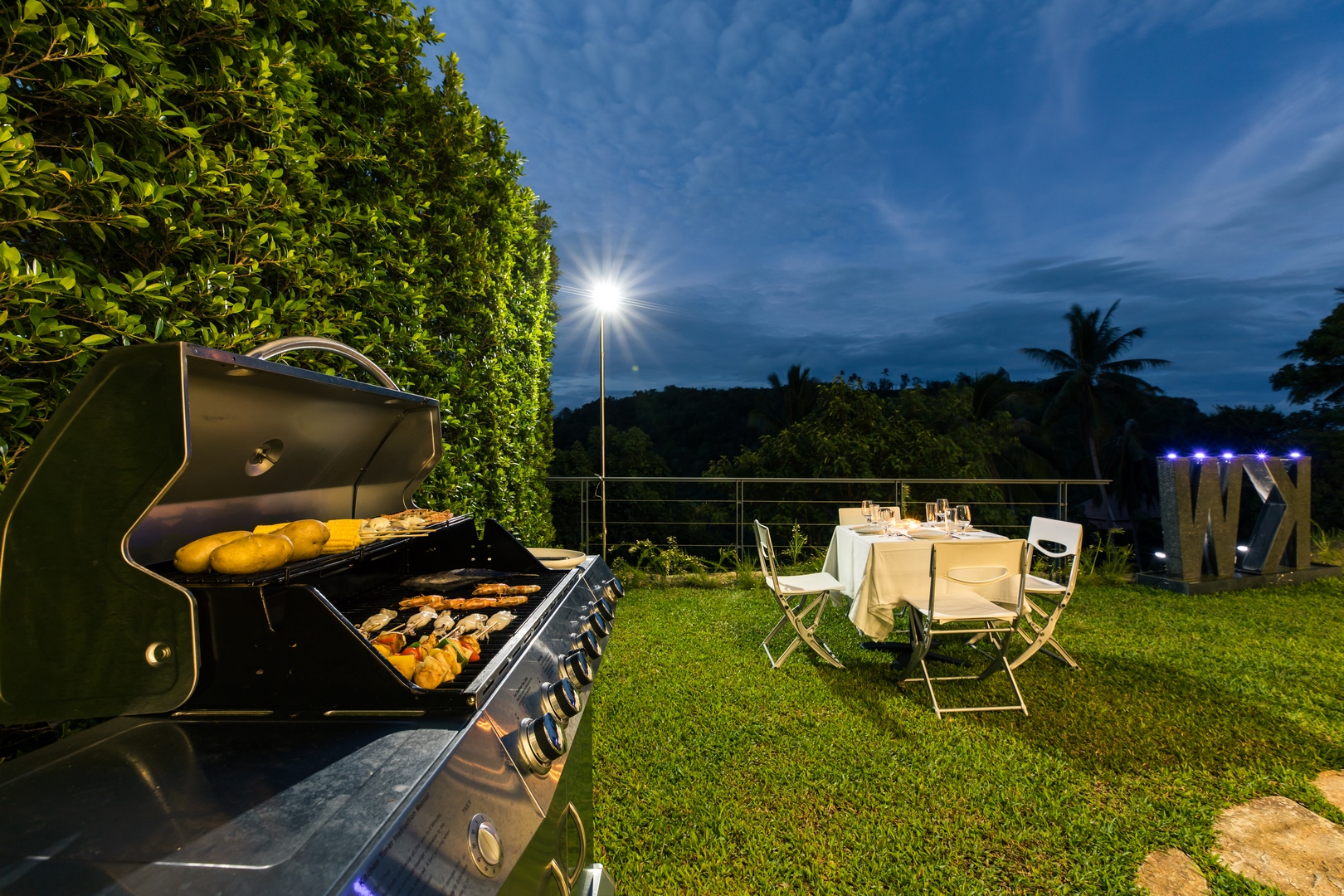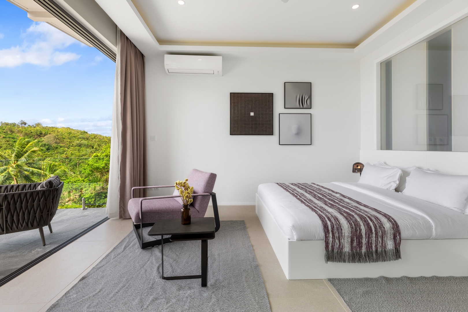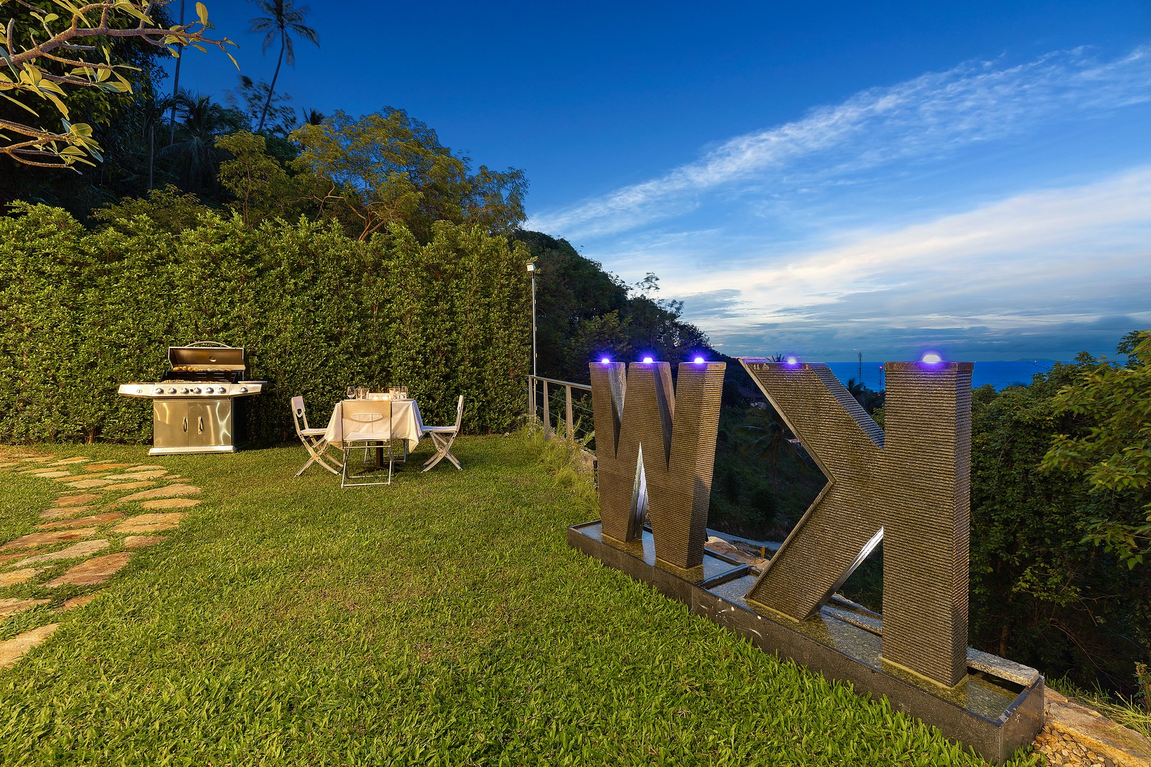 This exceptional property is located in the renowned residential estate of Santi Thani, nestled in the serene Bangpor beach area of northern Samui. It boasts a unique design and is furnished with premium materials, finishes, and top-of-the-line electrical appliances. One of its standout features is the rare and spacious garden, despite being situated on a hillside. This is achieved through the clever use of cascaded retaining walls, creating a flat garden area.