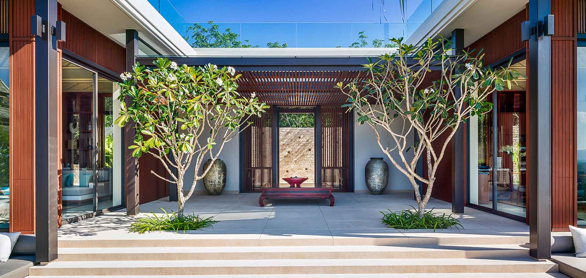 The villas take advantage of the tropical environment by balancing a mix of covered and outdoor spaces, including an open Sala, sweeping outdoor decks and open stairways. The architecture further mirrors the landscape by using indigenous materials - Thai travertine, locally-sourced wood, stone and terrazzo flooring - keeping the interior and exteriors natural and authentic.