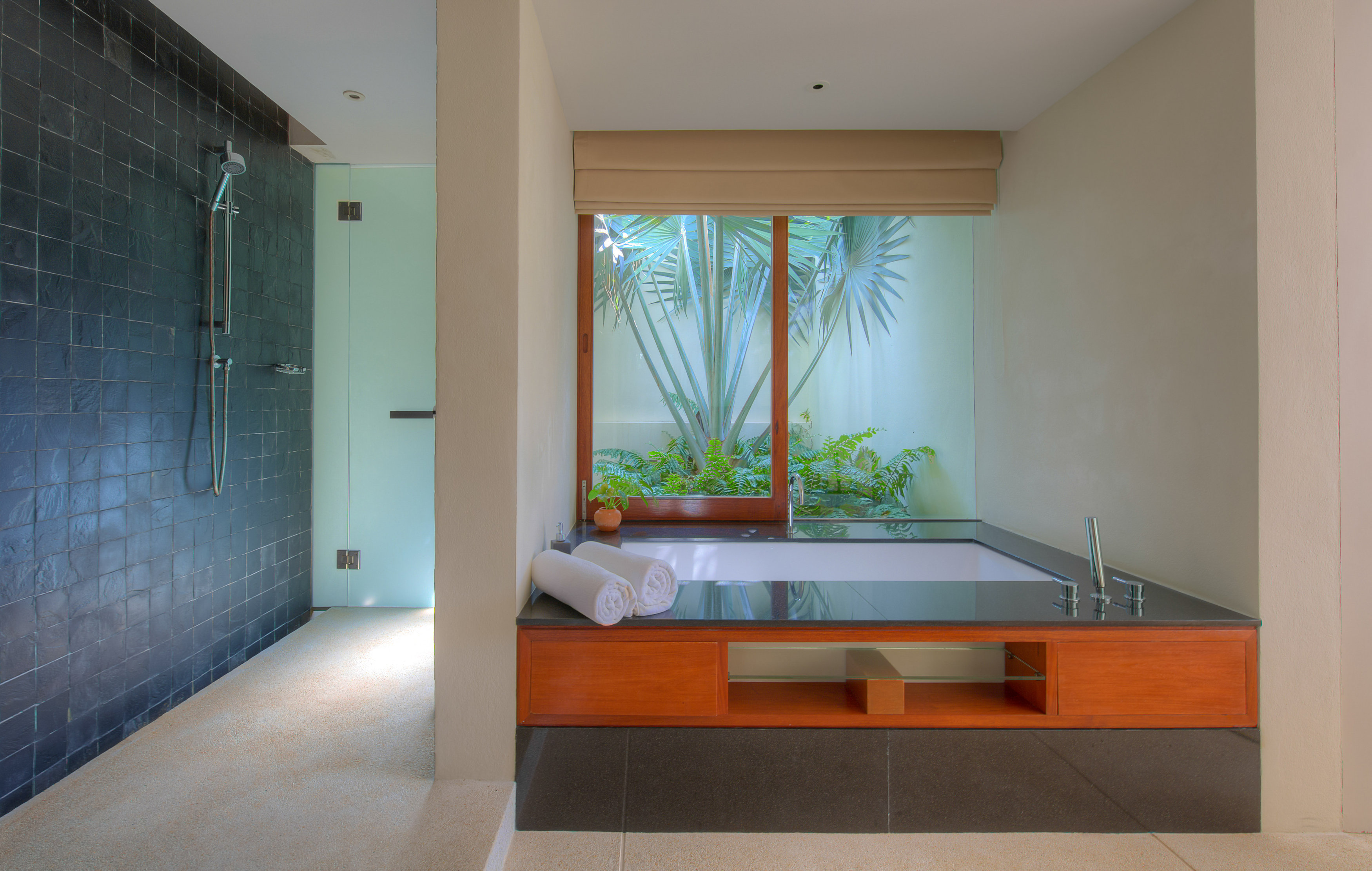 Villa 11A is a duplex villa with three en-suite bedrooms. A striking entrance and landscaped gardens lead to a sizable outdoor area. This villa includes a television lounge, open-air living and dining room overlooking the infinity pool, and features a breakfast bar and chic kitchen. This villa has stunning sea views and a secluded garden featuring large natural rock formations. The private roof deck is great for sunsets and yoga practice during an unforgettable stay in Thailand