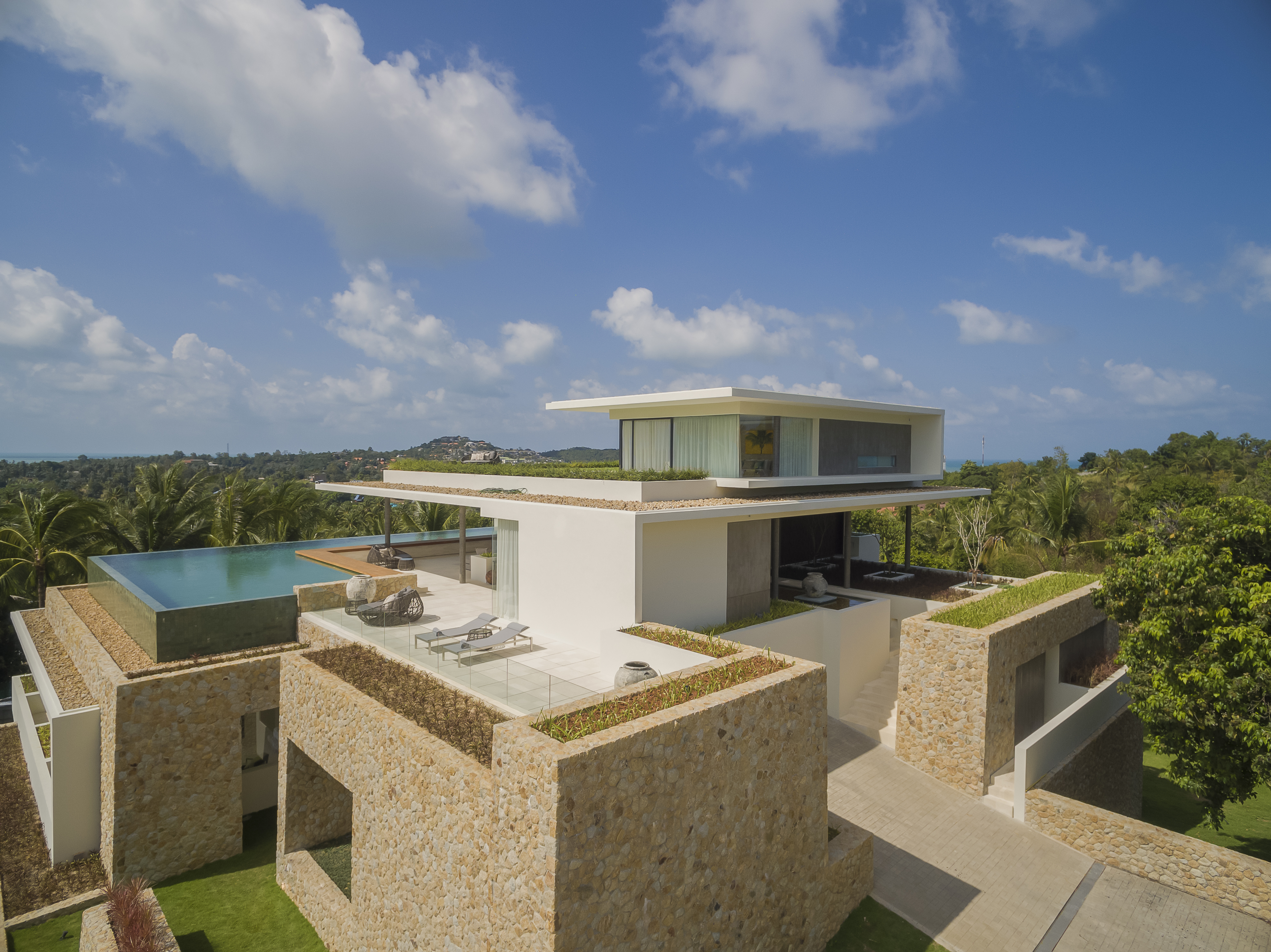 This luxury estate consists of 27 charming villas from 1 to 8 bedrooms, all with oversized private infinity pools, modern Thai architecture and breath-taking views, 5-star hotel services, and details that make the world of differences.