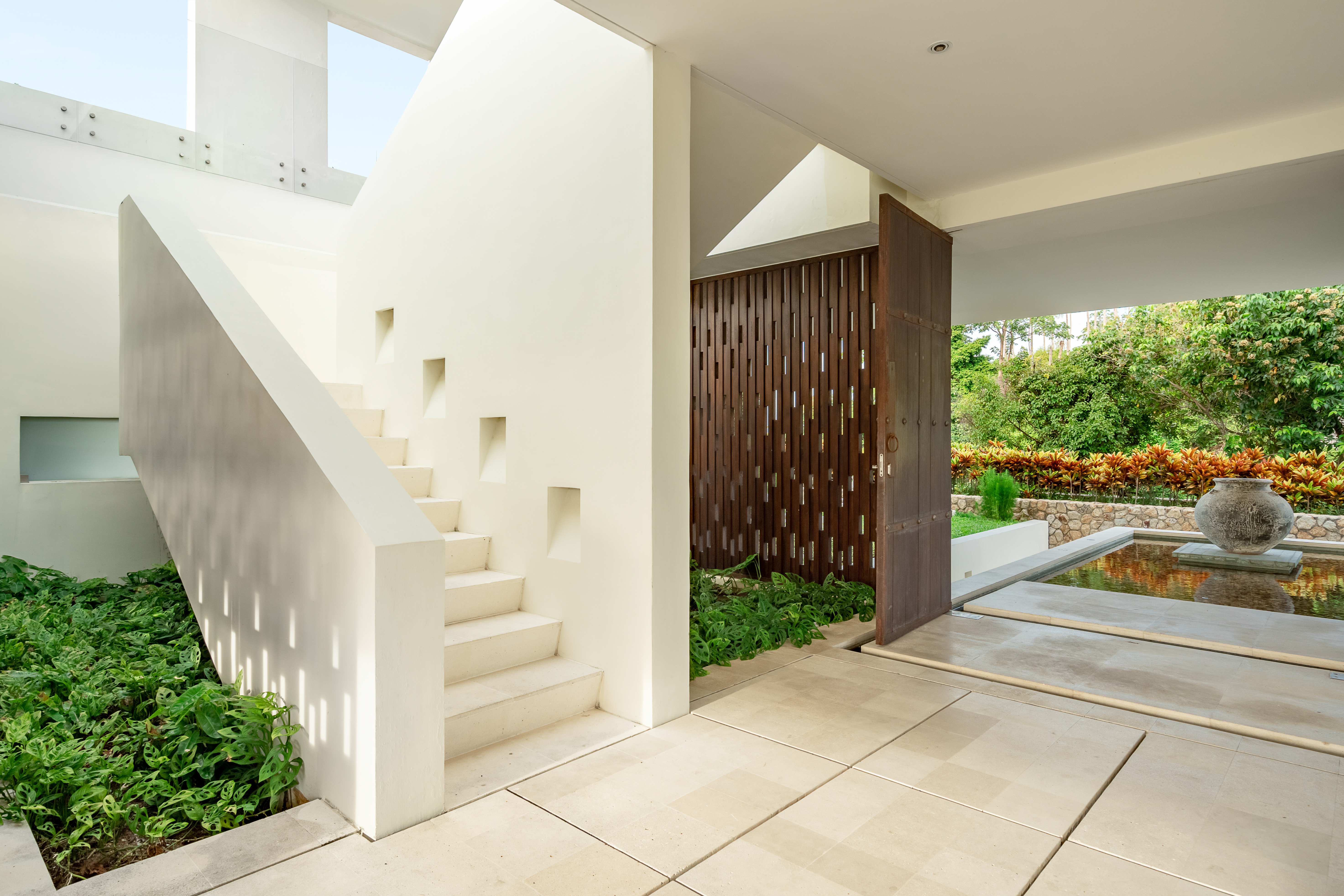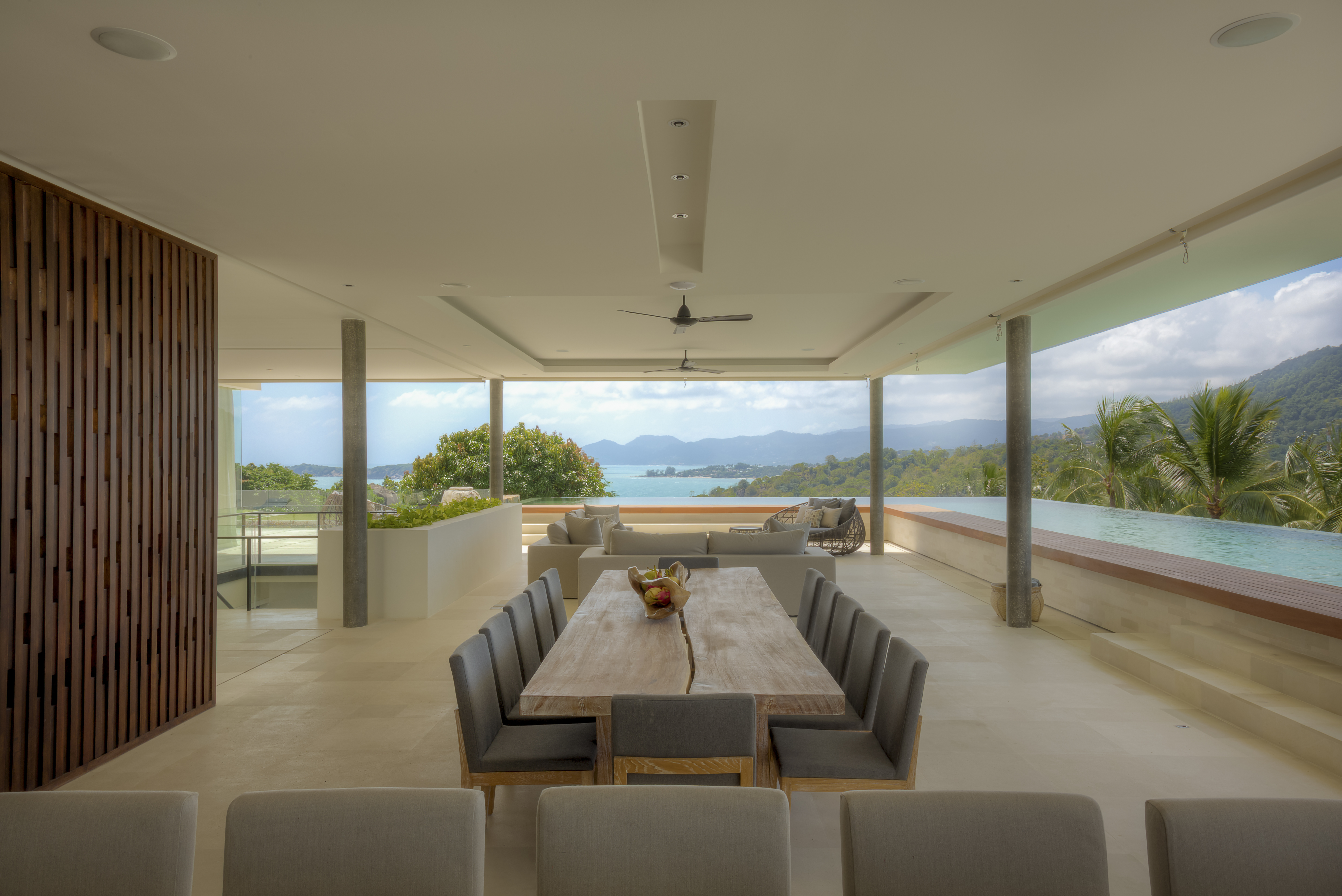 The estate is designed by Award-winning designer, Gary Fell of GFAB Architects. He designed for the villas to reflect the natural topography and elevation as well as incorporating mature tropical trees and rock formations into each villa