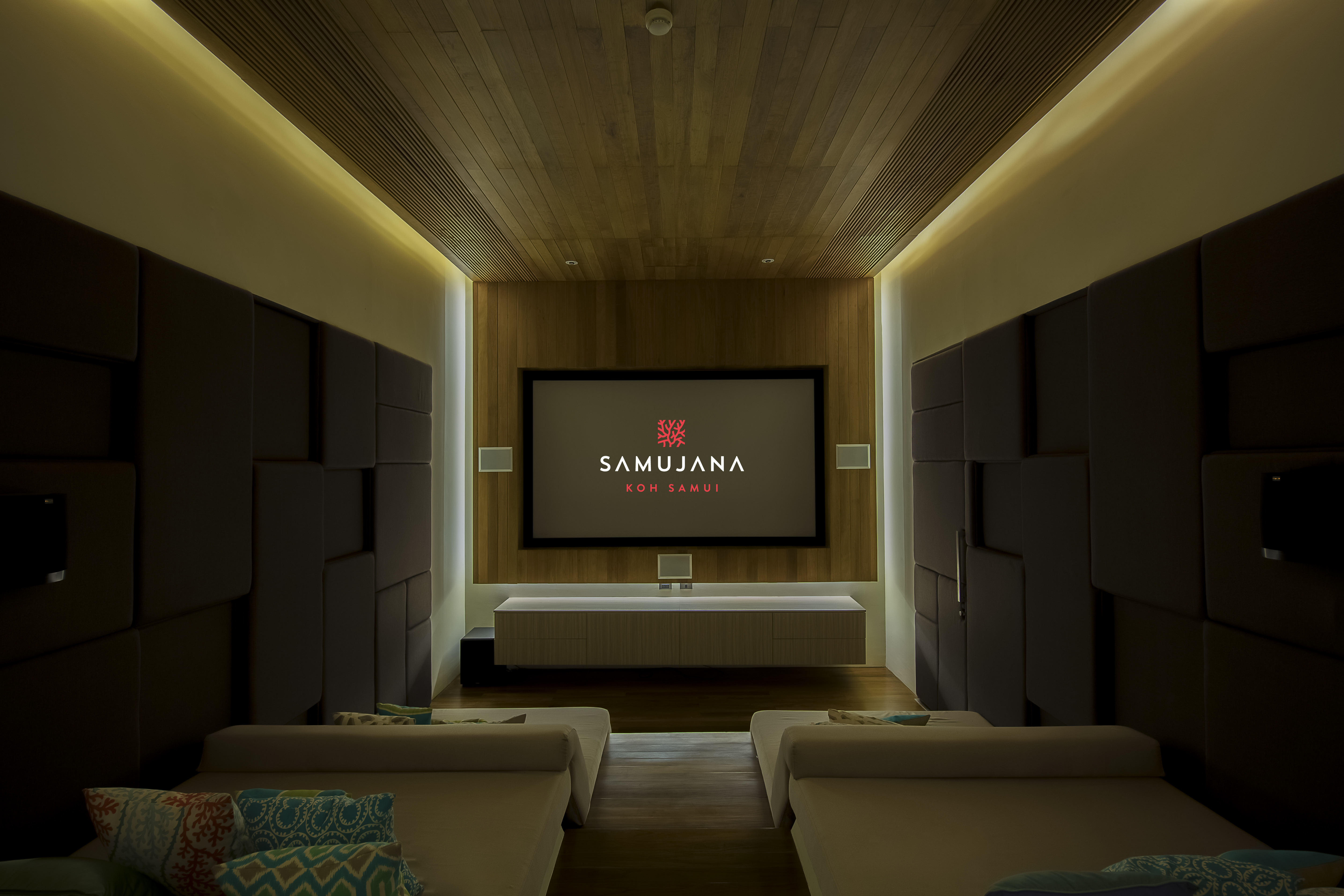 Villa 21 has the largest family garden area within the Samujana estate. Boasting six bedrooms in total, two master bedrooms and four large guest bedrooms, perfect for friends and family, all complete with en-suite bathrooms. Villa amenities are modern and feature an oversized infinity edge swimming pool, a private cinema that seats 12 guests and a fully equipped gym. As with all villas in Samujana, there’s plenty of space to relax and rewind with areas to chill out whilst on holiday, as well as fabulous lounge and dining areas to entertain friends and family with spectacular dinner parties, barbecue and cocktail parties.