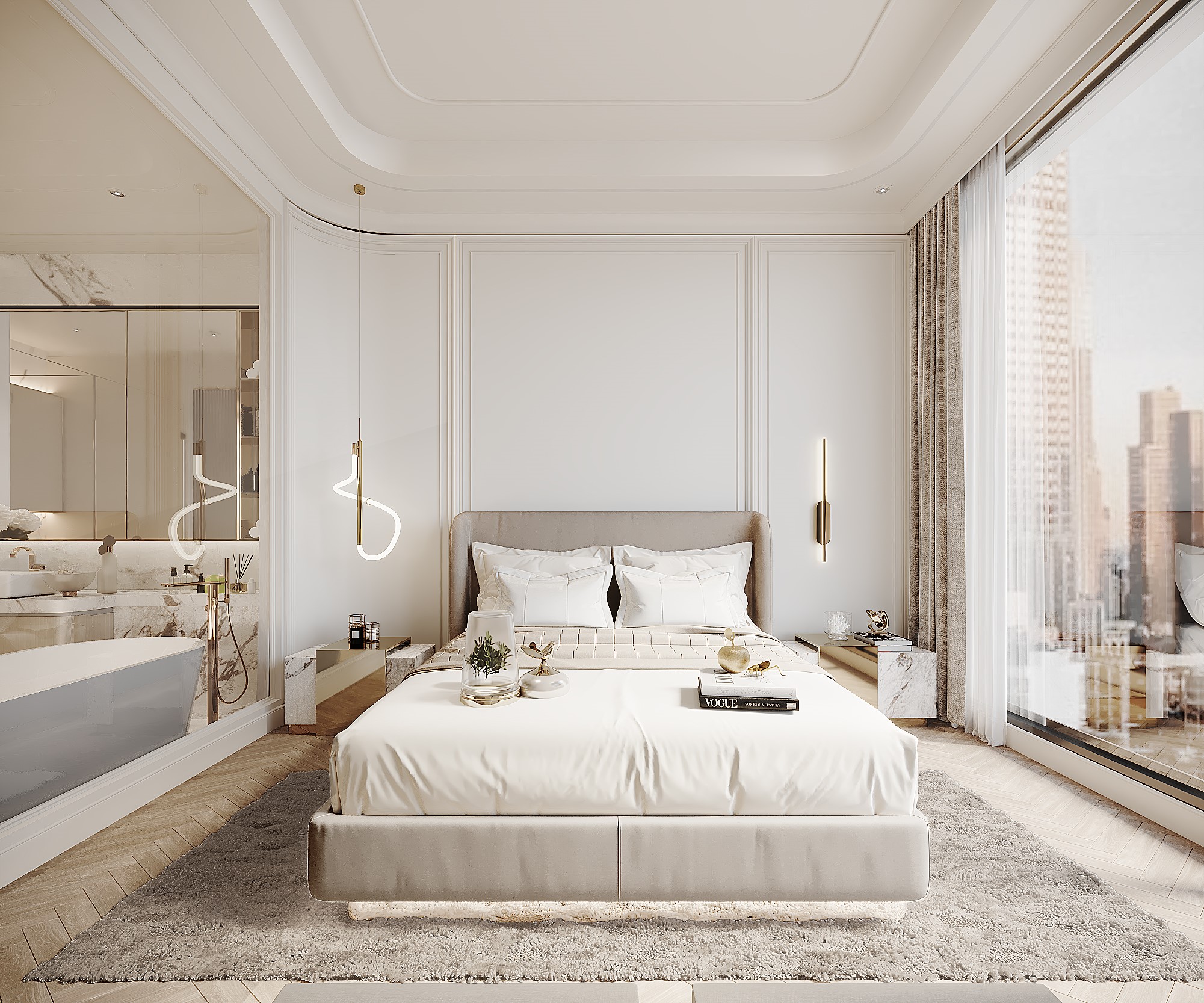 Residential units are spacy and offer wide variety of layouts, starting from 65 sqm 1-bedrooms; unique double-space designs with 4.35 m ceilings are available. All units in Glasshouse and Courtyard zones are duplexes, with double-height living rooms. Courtyard duplexes in particular offers some very interesting layout, with the rooms converging onto the central, double-height balcony with a jacuzzi.