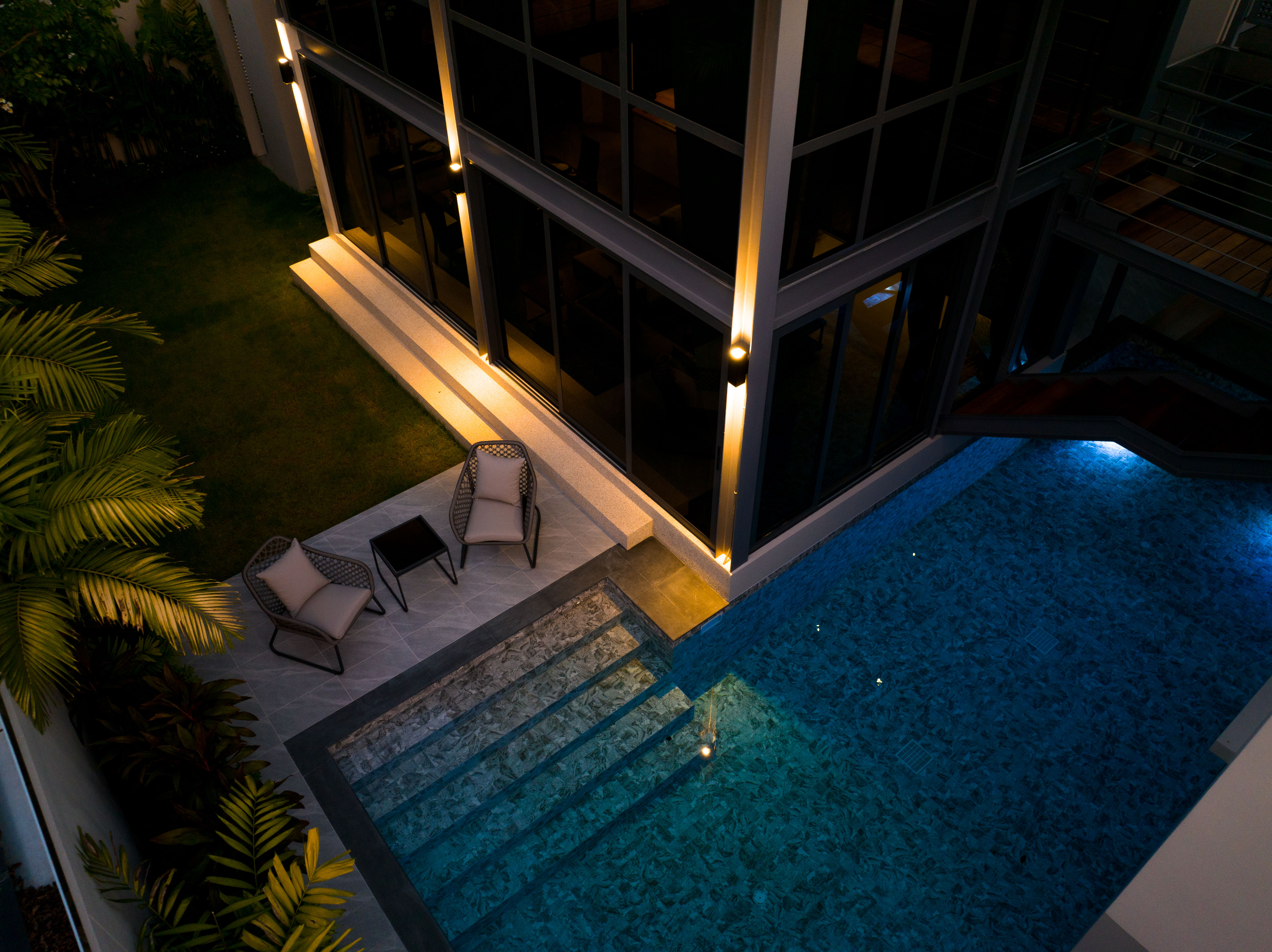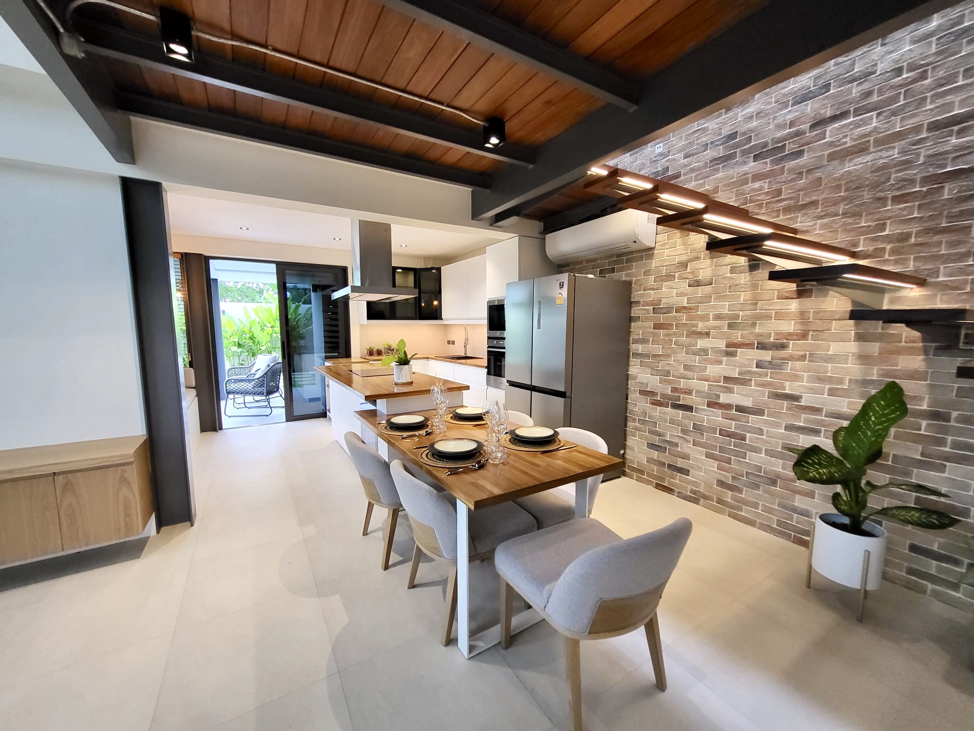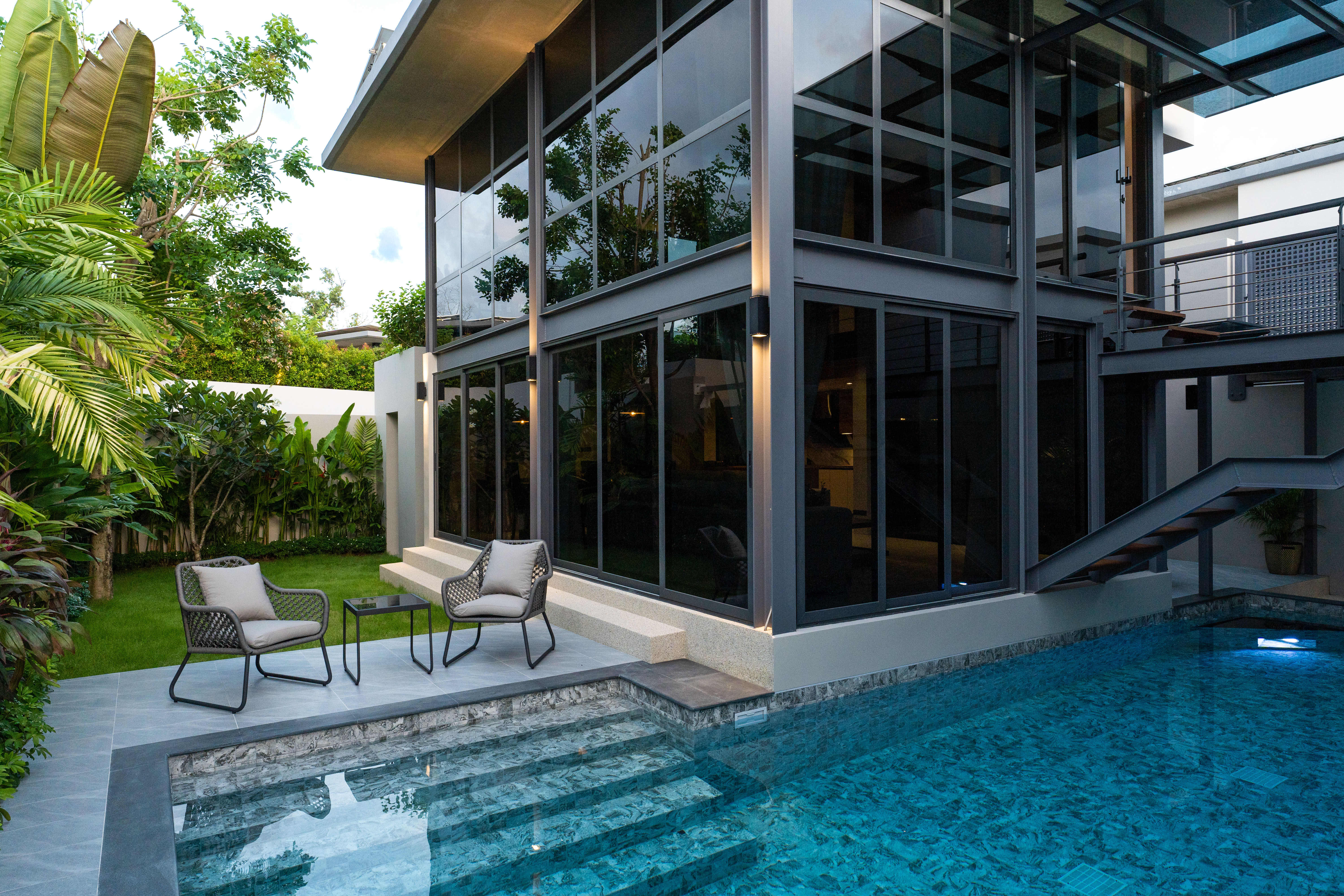 Each villa has a saltwater chlorinated pool with natural stone tiles, double-volume living room. modern European-style open kitchen and 2-4 bedrooms.