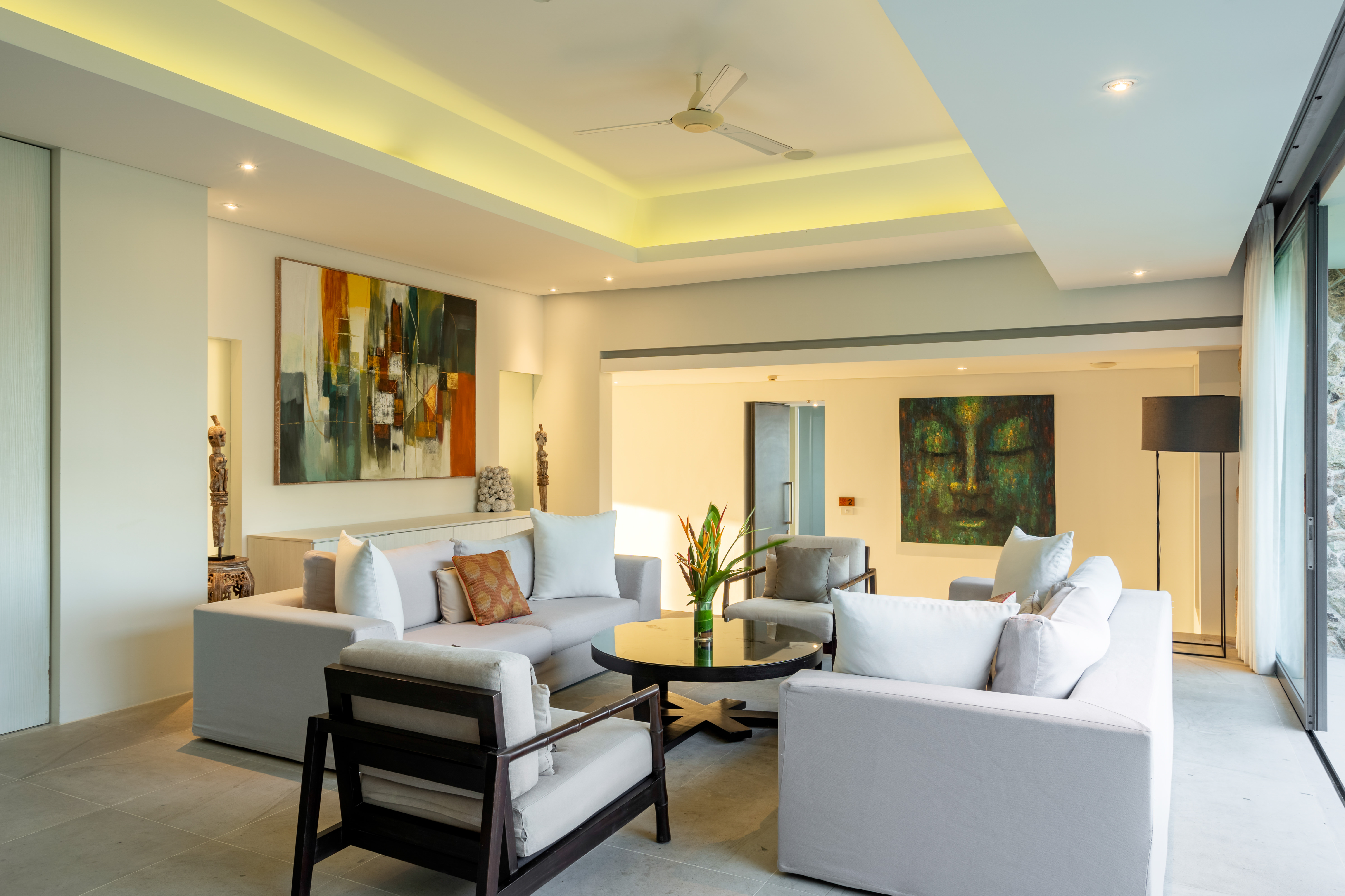 The estate is designed by Award-winning designer, Gary Fell of GFAB Architects. He designed for the villas to reflect the natural topography and elevation as well as incorporating mature tropical trees and rock formations into each villa