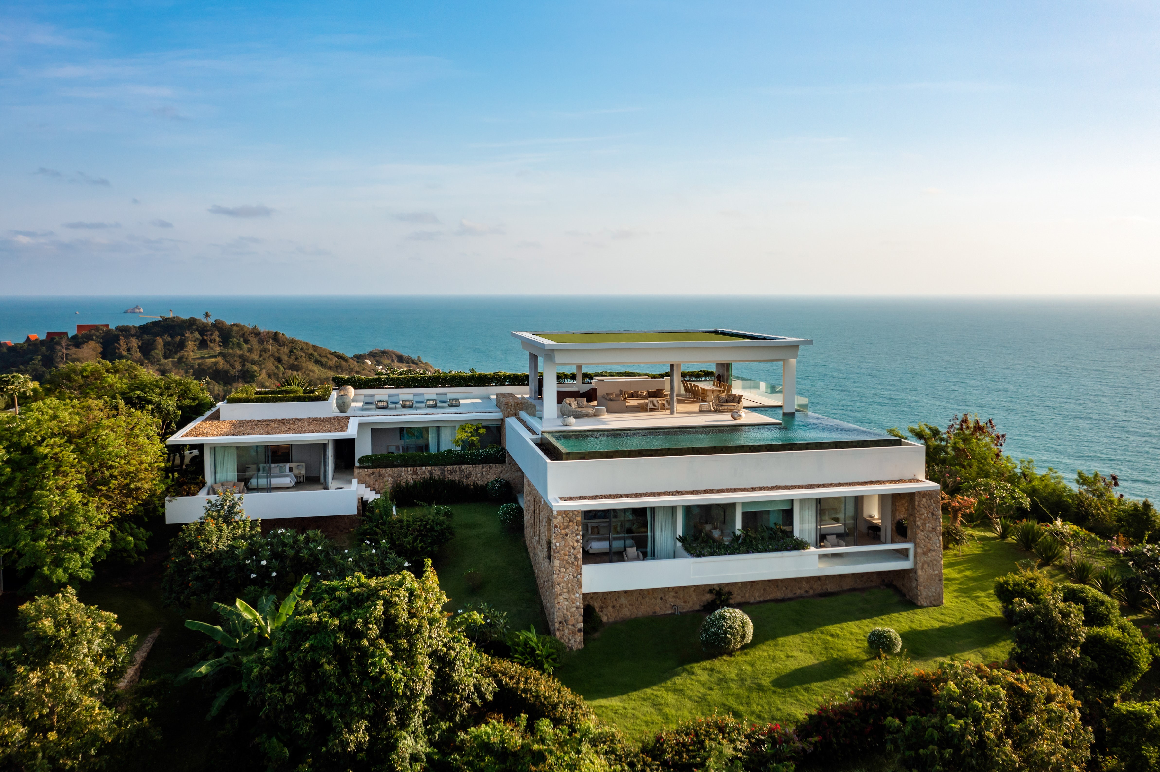 This luxury estate consists of 27 charming villas from 1 to 8 bedrooms, all with oversized private infinity pools, modern Thai architecture and breath-taking views, 5-star hotel services, and details that make the world of differences.