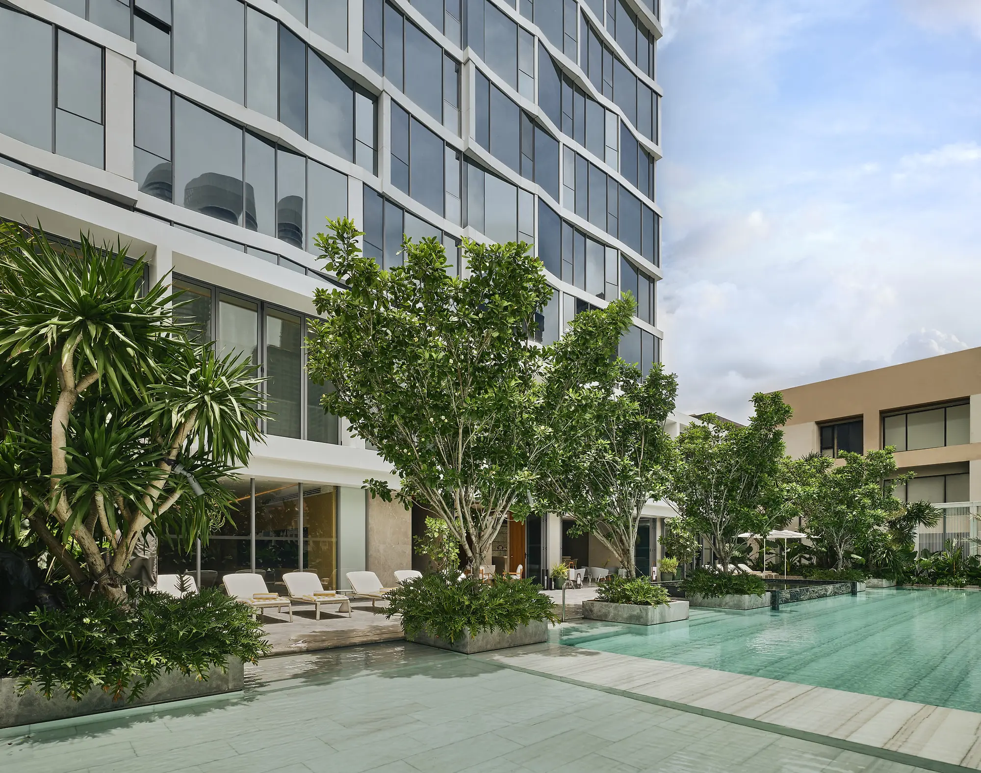 The resulting work is an understated, timeless design, inspired by Scandinavian architecture, realized with top-of-the-line materials and equipment, where incredibly well thought-out spaces flow in effortless simplicity. Scope Langsuan features over 2500 sqm of common areas, featuring unparalleled facilities and services - from temperature-controlled marble pool to fully-equipped private cinema; from valet parking to maid service. The buildings facade uses double glazing low-E heat reduction coating glass to protect the tenants from UV and Bangkok heat. The building has full load hotel-spec generator, anti-dust auto-parking and temperature/humidity-controlled storage space.