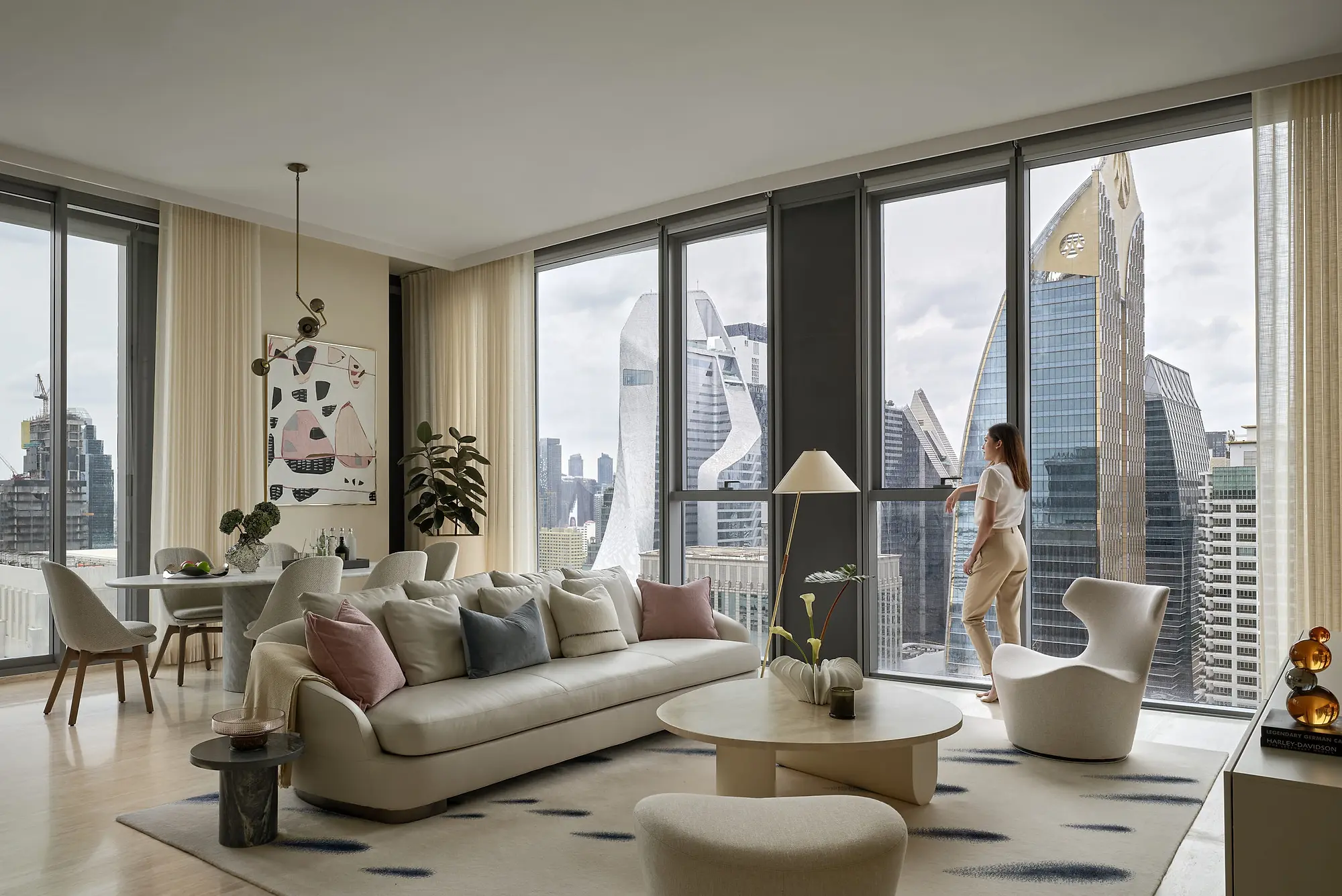 The project offers 1-bedroom (84-86 sqm), 2-bedroom (155-169 sqm) and 3-bedroom (241-247 sqm) apartments, as well as exclusive penthouses. All units feature 3.5 meter-tall ceilings, panoramic windows with motorized blackout blinds, as well as equipment by world’s top manufacturers, including Gaggenau 400 series ovens, Bulthaup kitchens and Sub-zero fridges and wine cellars. Select units are sold fully furnished by Thomas Juul Hansen.