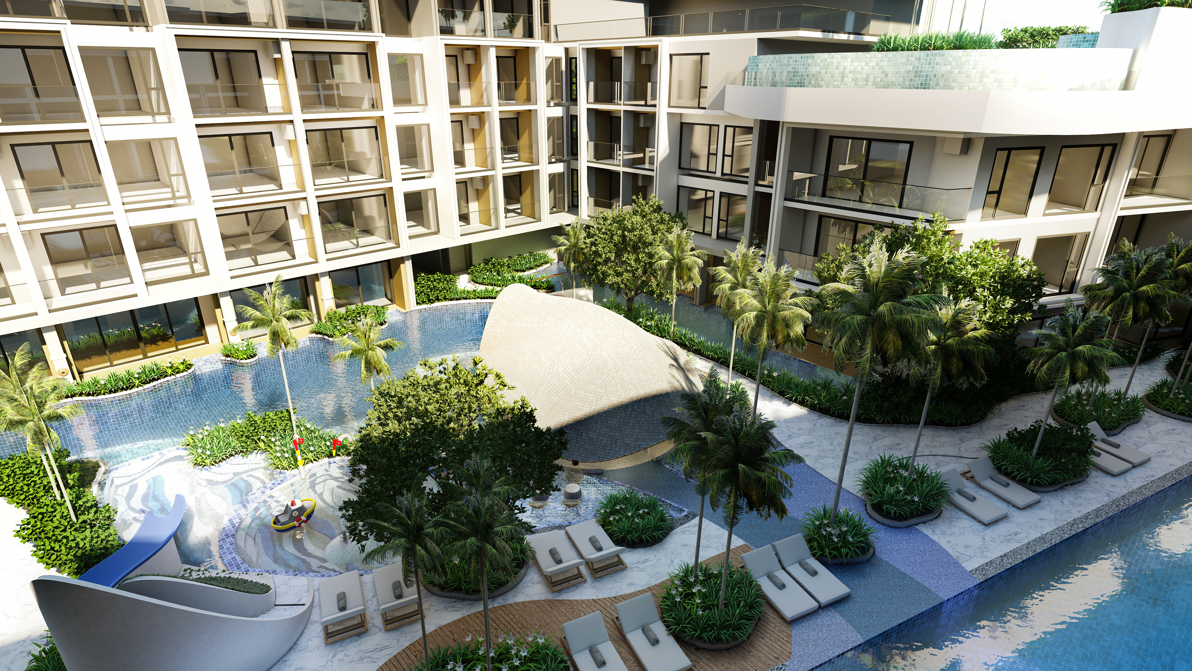It's a big multi-phase development, including several condominium phases, Wyndham hotel, 2 villa developments, park, clinic, commercial shophouse area, shopping and dining district as well as 2 more hotels, including unique panoramic hotel.