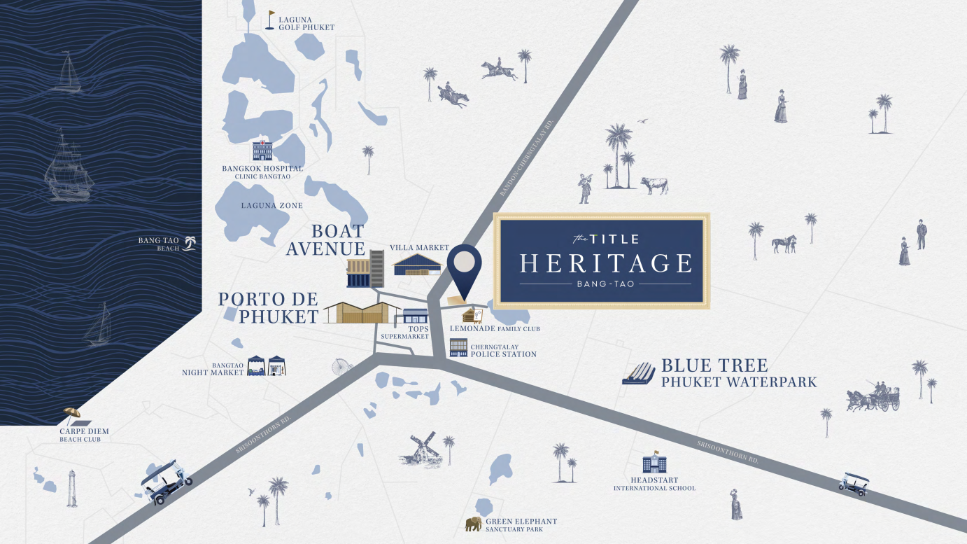 With Title Heritage the main highlight is the location. The developer managed to acquire a massive 15+ rai (25,350 sqm) plot located just 250 m from Boat Avenue - a supremely popular shopping and dining district that in the last years had become the centerpiece of the northern Phuket. Here you will find some of Phuket’s best restaurants, bars and shops - and if that’s not enough, Central Group’s Porto de Phuket lifestyle mall is right here next door, and on the other side Boat Avenue is adjacent to the entrance to Laguna Phuket. Simply put - this is the area where people want to be.