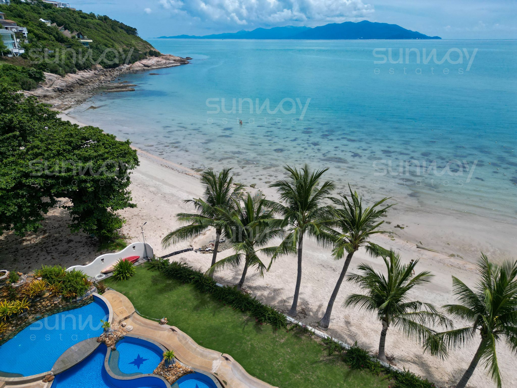 Set on the soft white sands of Tongson Bay, this rare beachfront villa is a truly unique opportunity in one of Koh Samui’s best-kept secret bays. Tongson Bay is a year-round swimmable beach, known for its calm waters and exclusivity, shared only with a handful of luxury homes and the renowned 5-star Melati Beach Resort. Tucked within an established and private beachfront estate, this villa offers direct beach access and sits just steps from the estate’s communal beachfront swimming pool—one of only two villas with this enviable position.