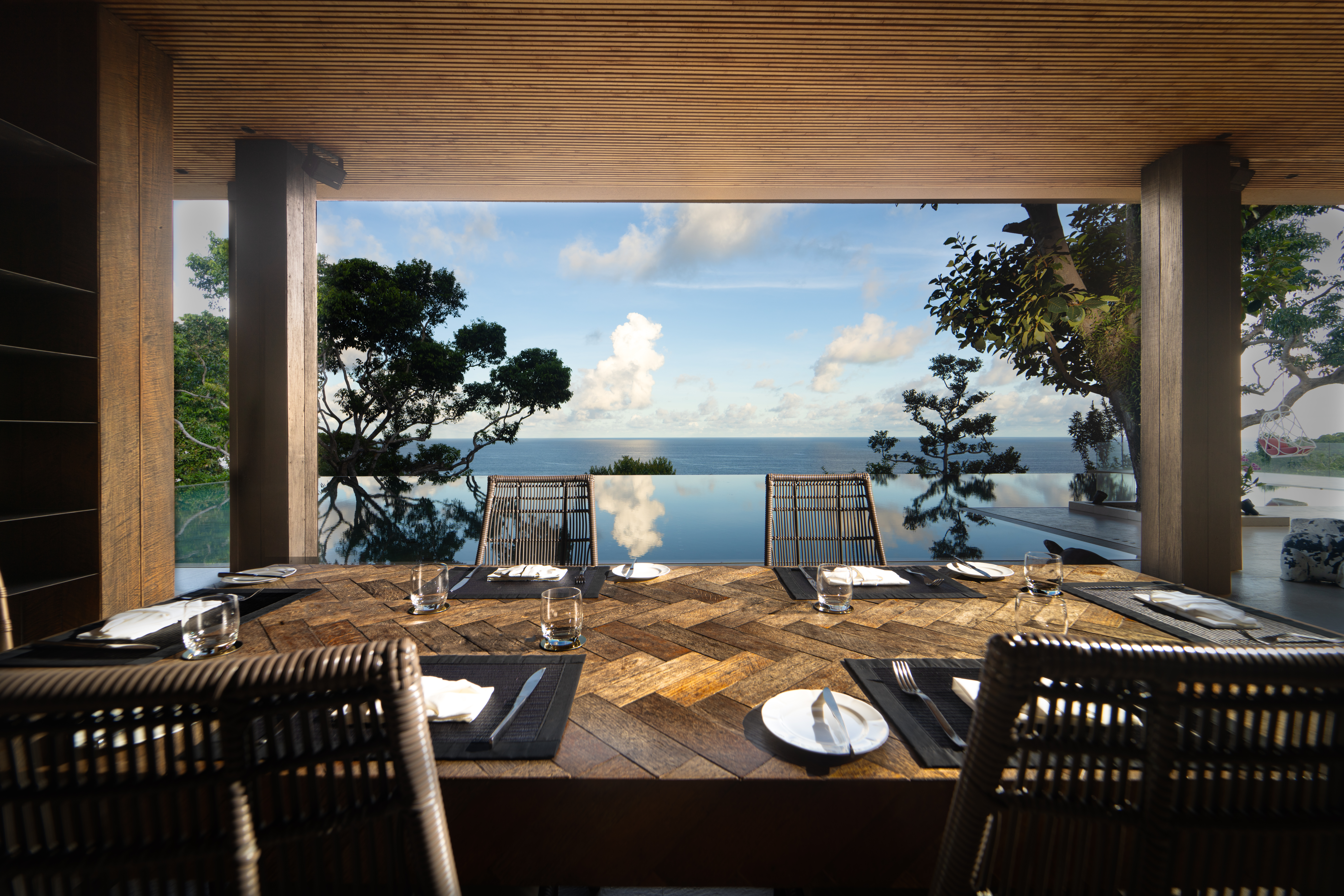 Surrounded by a broad stone terrace and verdant tropical gardens, Villa Amarisa’s outside area venter on the 24-meter infinity pool. Savor alfresco meals on the shaded terrace, unwind on the soft sun loungers, or stroll around the beautiful gardens dotted with exotic palms and frangipani trees.