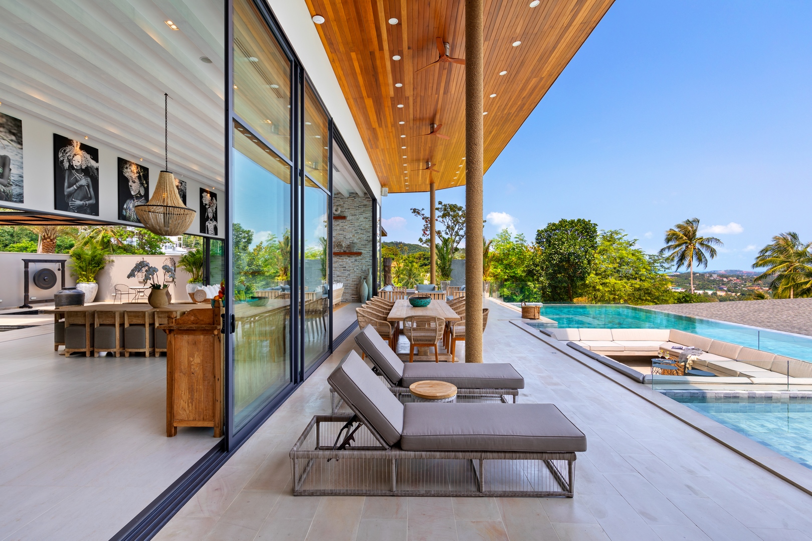 Villa Asi is a stunning 6-bedroom villa featuring a unique cascading design and offering panoramic sea views from every level. Perched on the hills of Chaweng, this luxurious property strikes the perfect balance between privacy and convenience, with easy access to local amenities. With chic decor, elegant furnishings, and spacious interiors, it's the ideal retreat for large families or groups looking for an indulgent getaway.