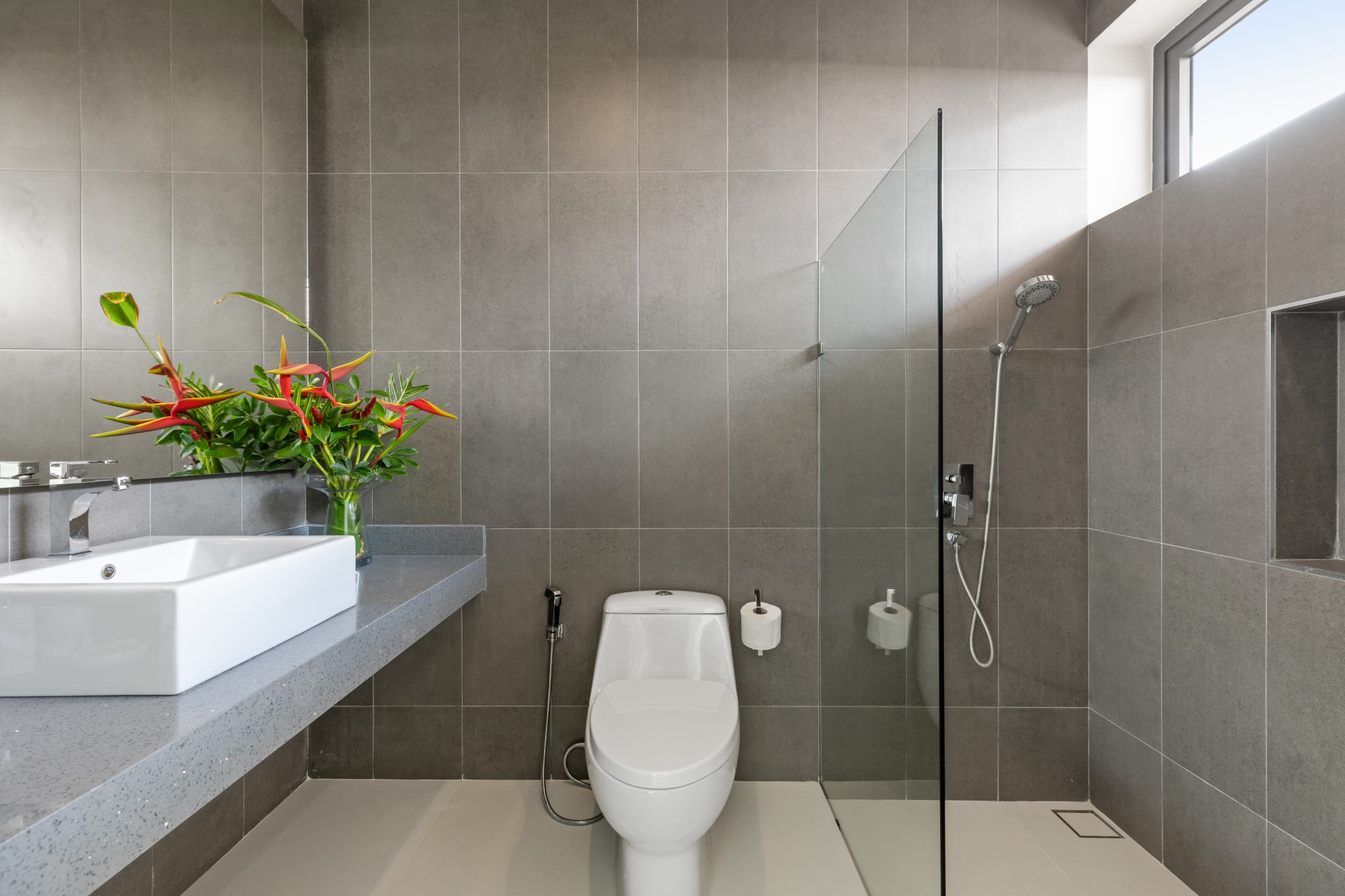 2 bedrooms are located in the second pavilion, creating extra privacy for villa guests. Each of the 2 bedrooms has an en-suite toilet and shower and a built in wardrobe.