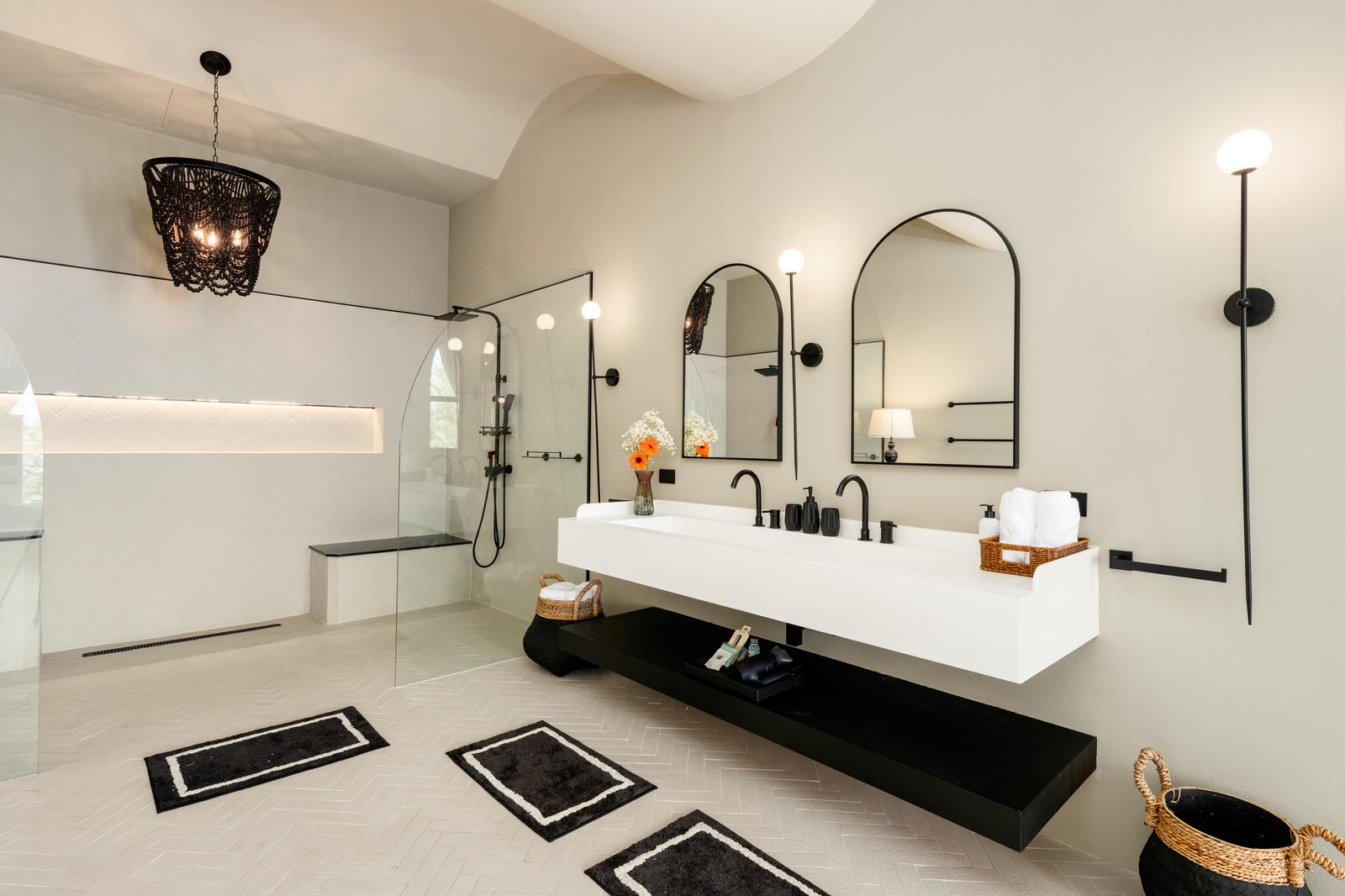 The main pavilion offers open-plan living with panoramic ocean views and opens out to expansive terraces ideal for alfresco dining and social gatherings. Each of the eight bedrooms features its own ensuite bathroom, with refined materials and handcrafted details throughout.