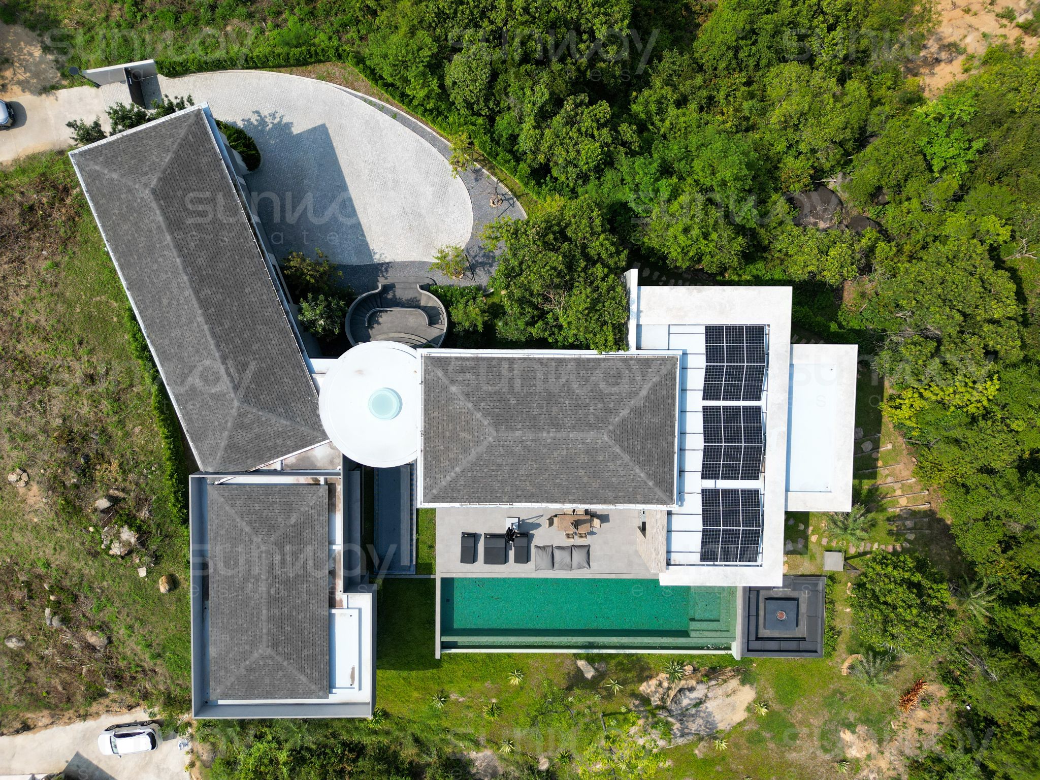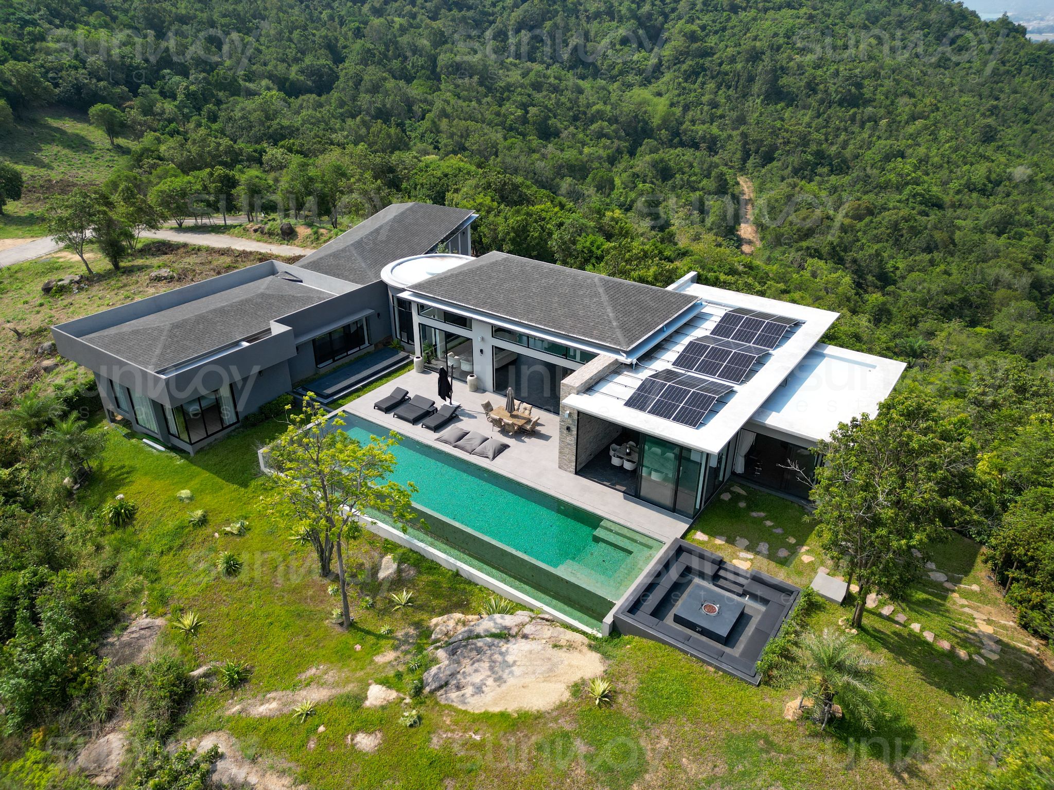 Villa Raphy is located in an exclusive, gated estate in Plai Laem, a low-density development favored by high-end homeowners. The estate offers well-managed infrastructure, 24-hour security, and privacy without sacrificing accessibility. The villa’s elevated position and unobstructed surroundings ensure panoramic views, all-day breezes, and complete seclusion. It is also equipped with self-sufficient water and power systems for sustainability and low ongoing costs.