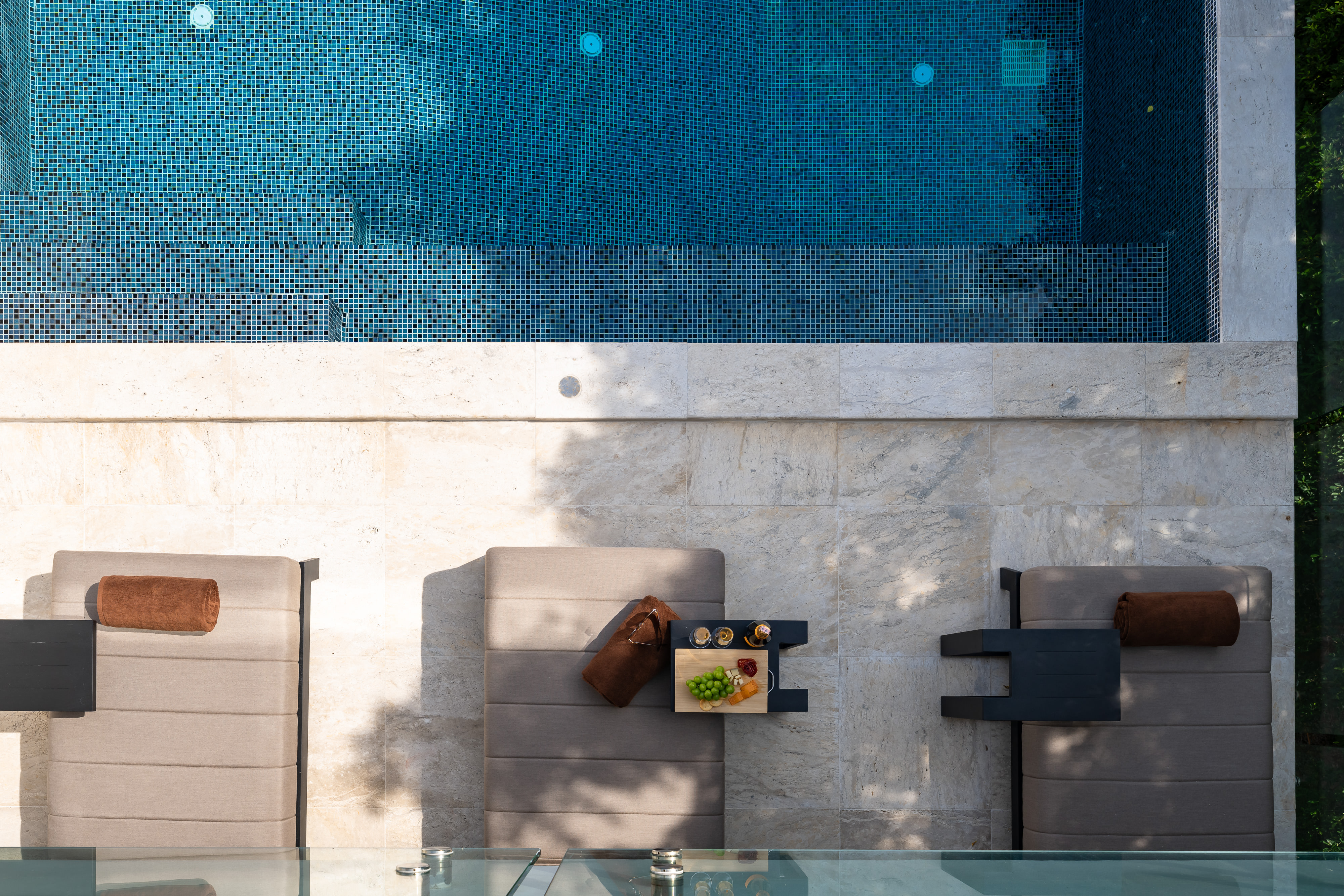 - Open-plan living, dining, and kitchen opening to pool terrace